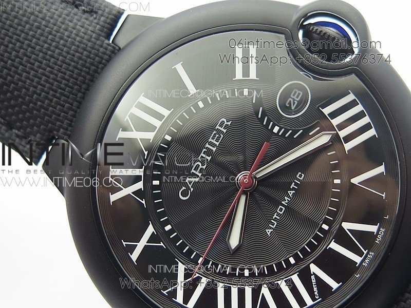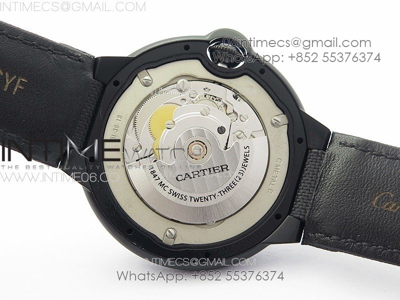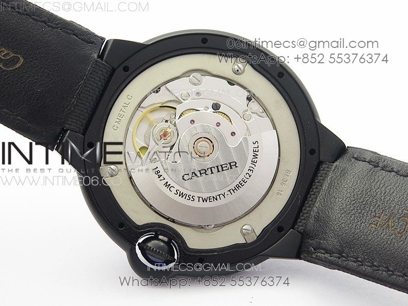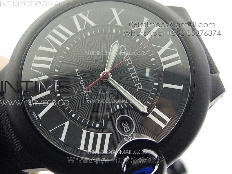 Ballon Bleu 42mm DLC 3KF 1:1 Best Edition Black Texture Dial on Black Leather Strap A2824