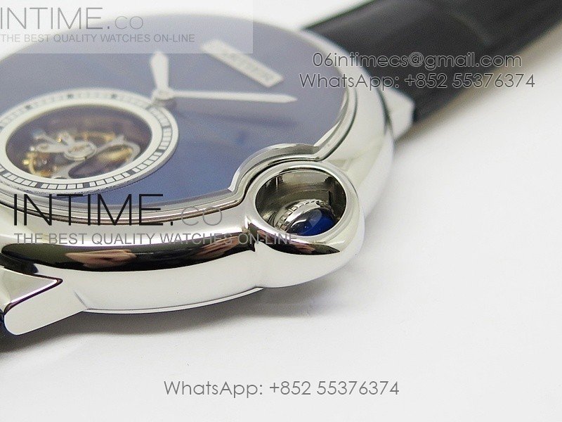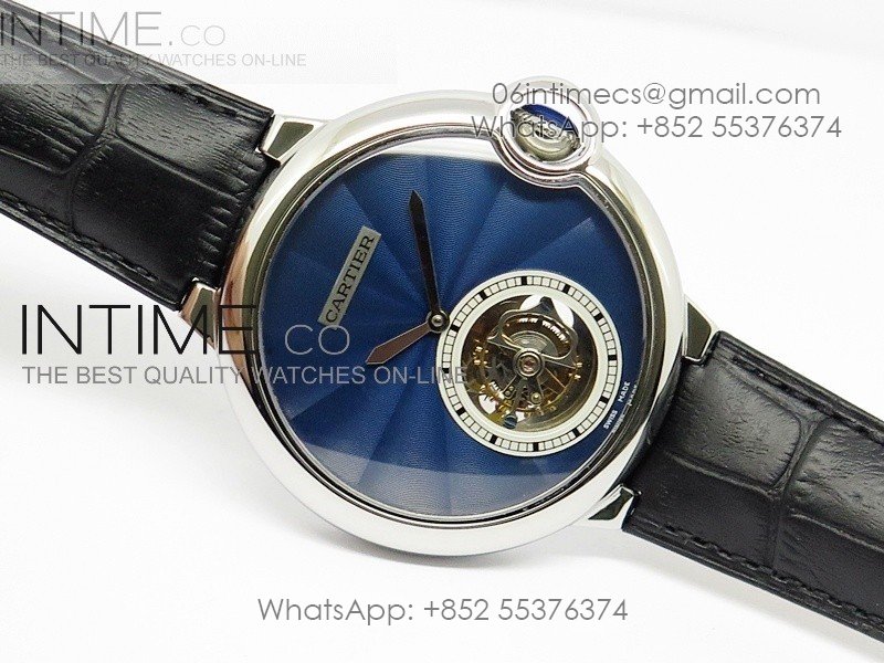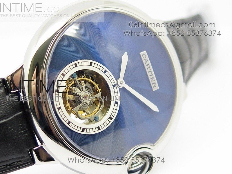 Ballon Bleu Tourbillon SS Blue Textured Dial on Black Leather Strap
