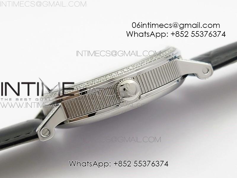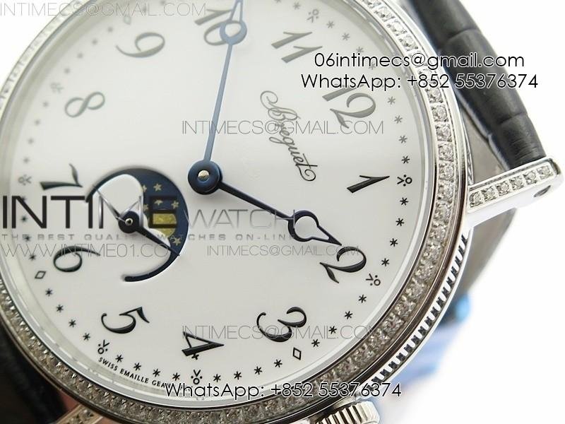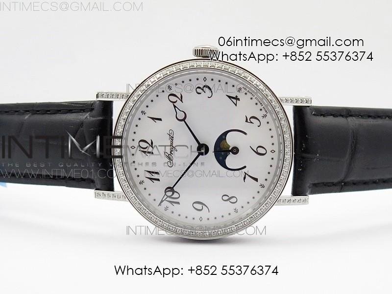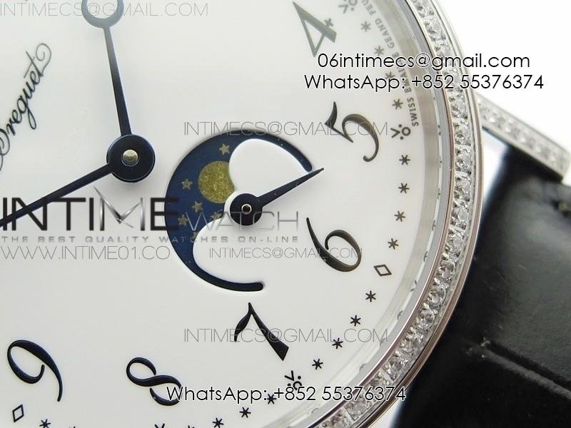 BG 9087BB Moonphase SS 1:1 Best Edition White Dial Diamond Bezel on Black Leather Strap Cal.770