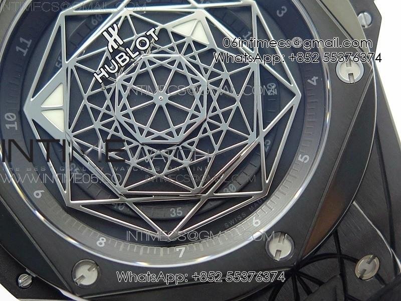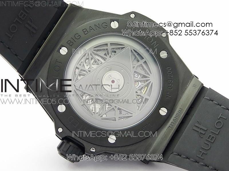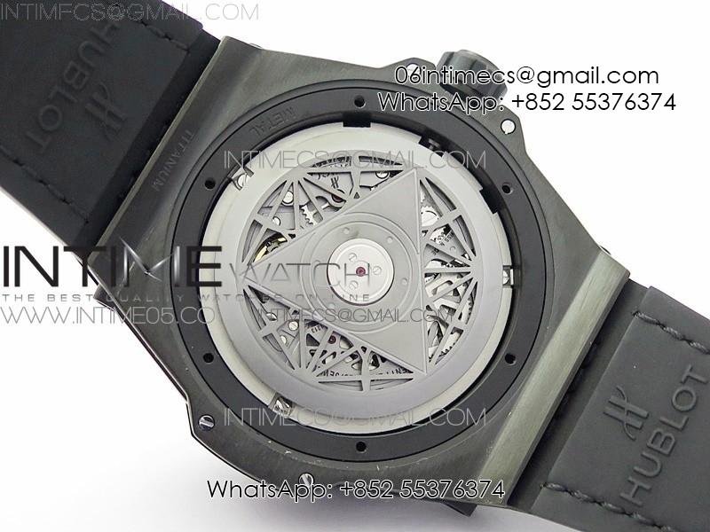 Big Bang Sang Bleu DLC Ti WWF 1:1 Best Edition Black Skeletonal Dial On Black Gummy Strap Asian HB1213 V2