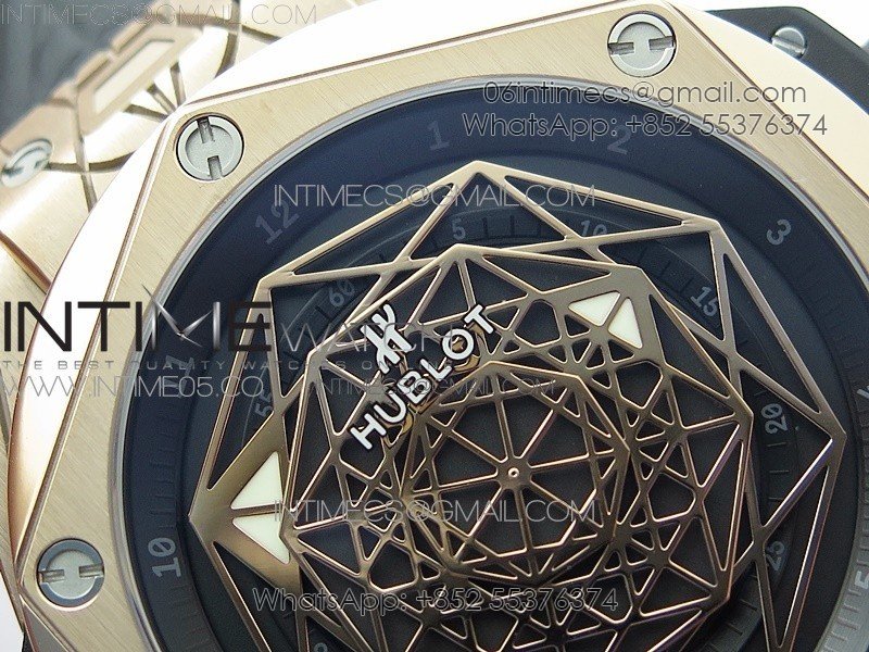 Big Bang Sang Bleu RG Ti WWF 1:1 Best Edition Black Skeletonal Dial On Black Gummy Strap Asian HB1213 V2