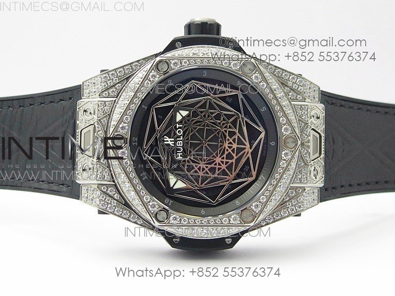 Big Bang Sang Bleu Ti Crystal And Case WWF 1:1 Best Edition Black Skeletonal Dial On Black Gummy Strap Asian HB1213 V2