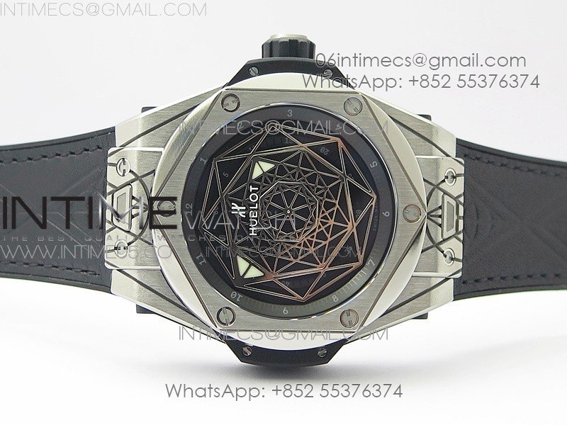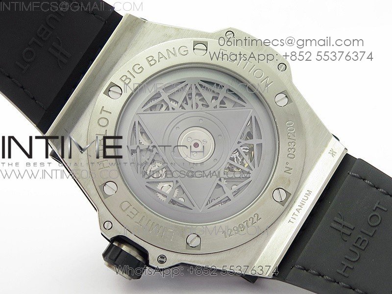 Big Bang Sang Bleu Ti WWF 1:1 Best Edition Black Skeletonal Dial On Black Gummy Strap Asian HB1213 V2