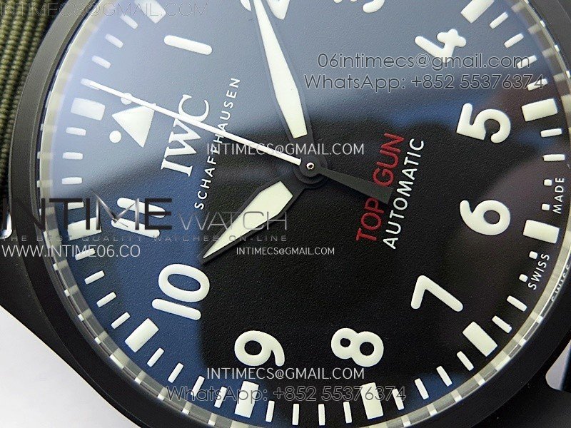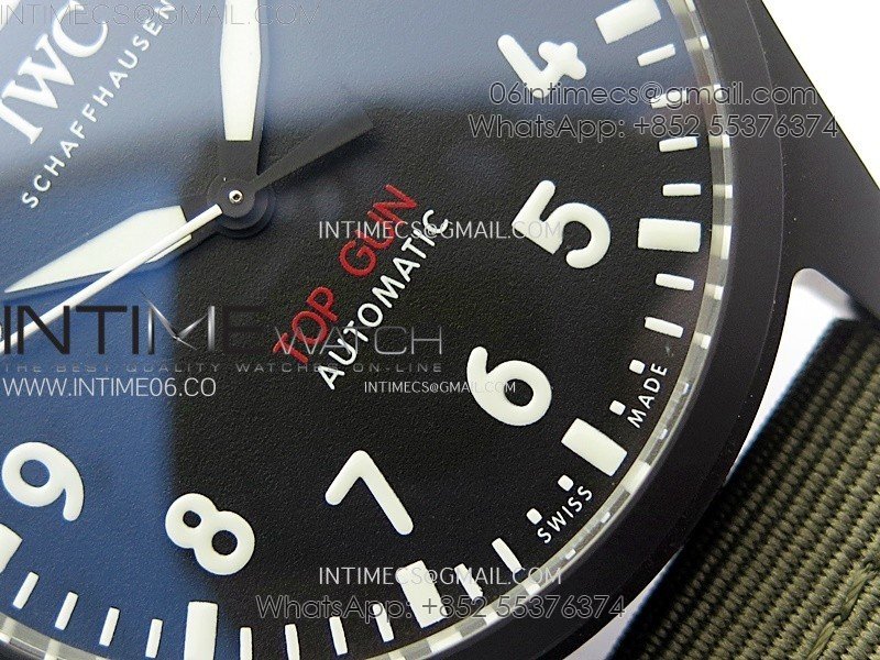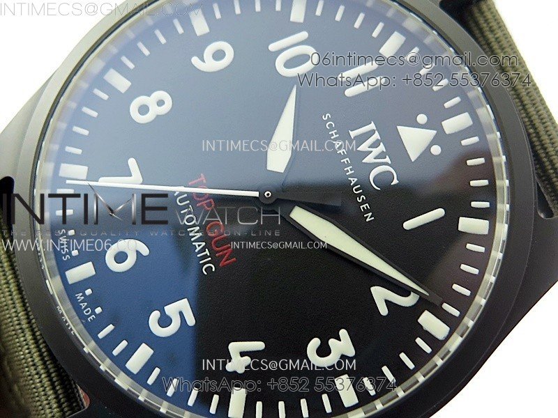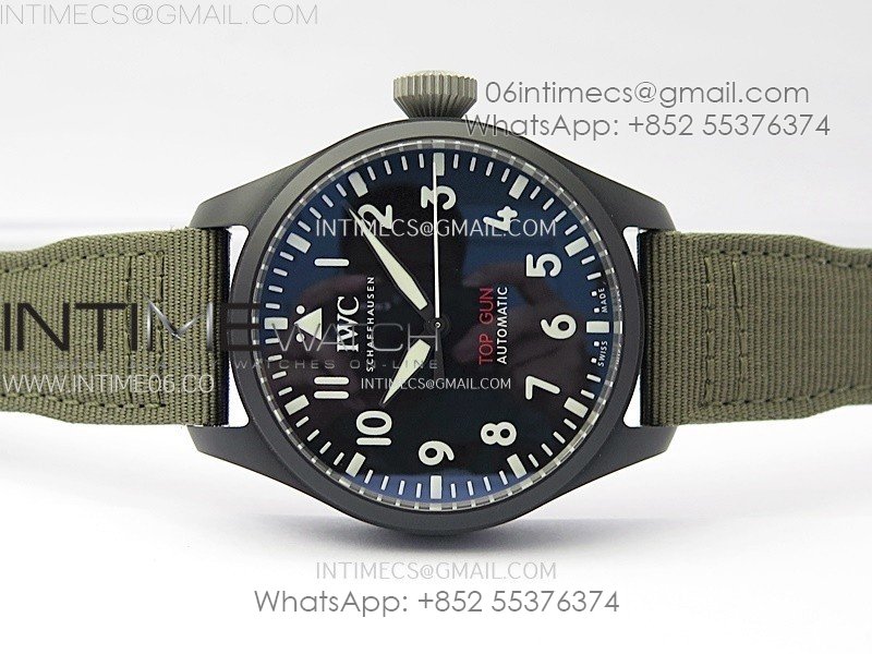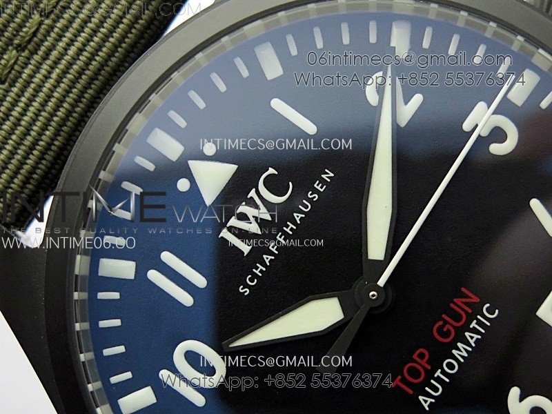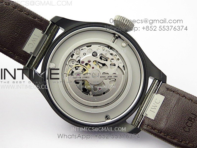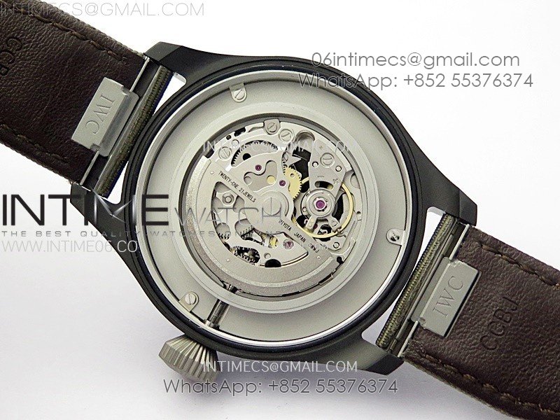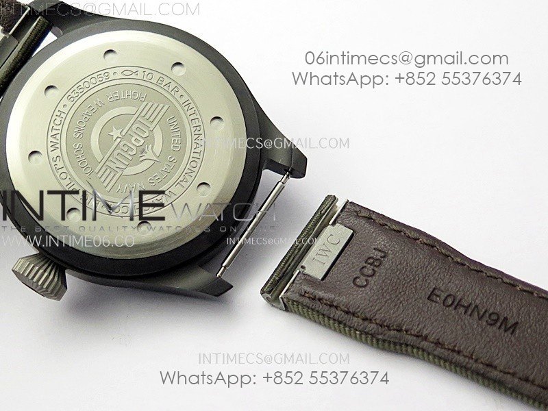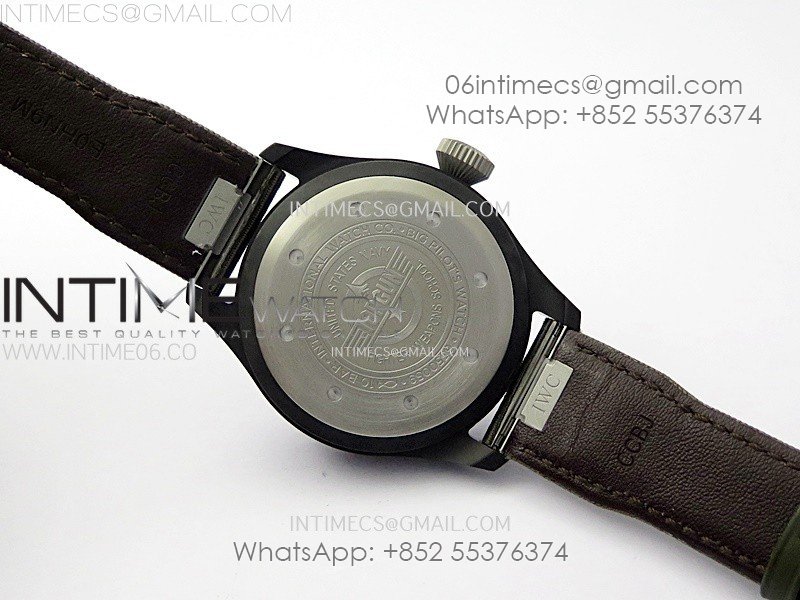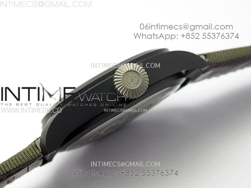 Big Pilot IW329801 Real Ceramic M+F 1:1 Best Edition Black Dial on Green Calfskin Strap SEIKO 8N-24