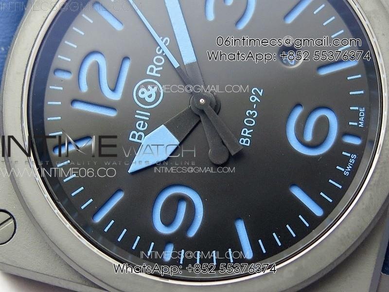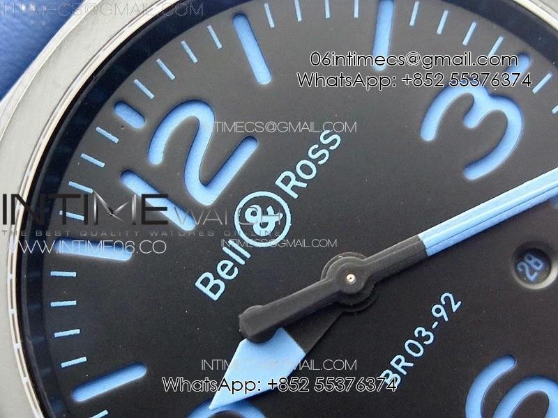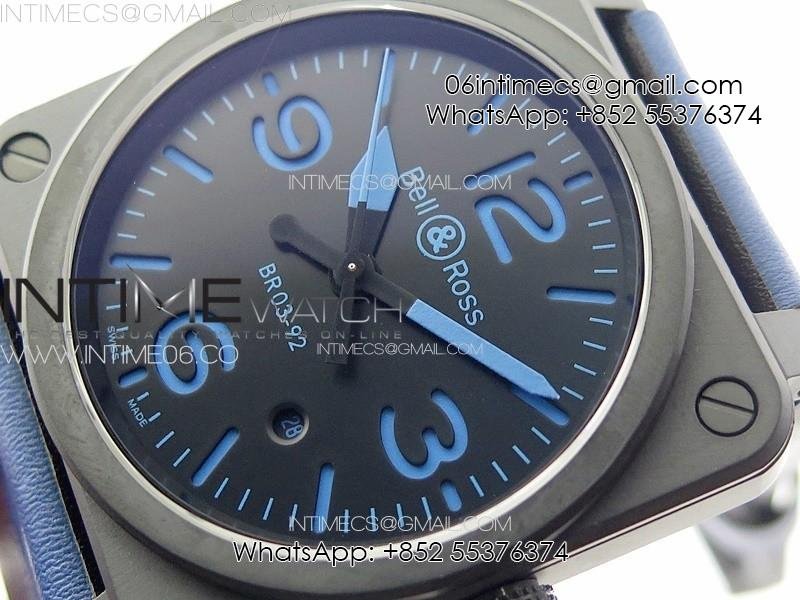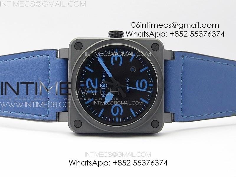 BR 03-92 Real Ceramic 1:1 Best Edition Black Dial Blue Markers on Blue Leather Strap MIYOTA 9015