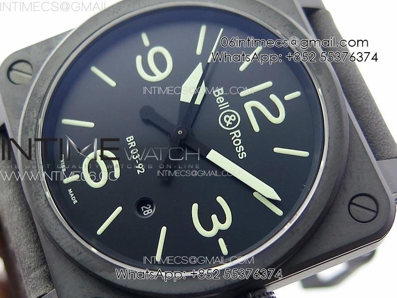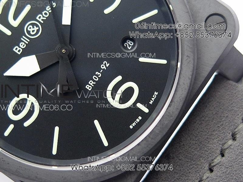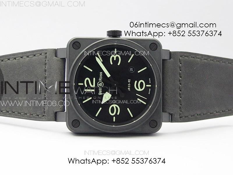 BR 03-92 Real Ceramic 1:1 Best Edition Black Dial Green Markers on Black Leather Strap MIYOTA 9015