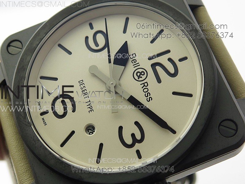 BR 03-92 Real Ceramic 1:1 Best Edition White Dial Black Markers on Brown Leather Strap MIYOTA 9015