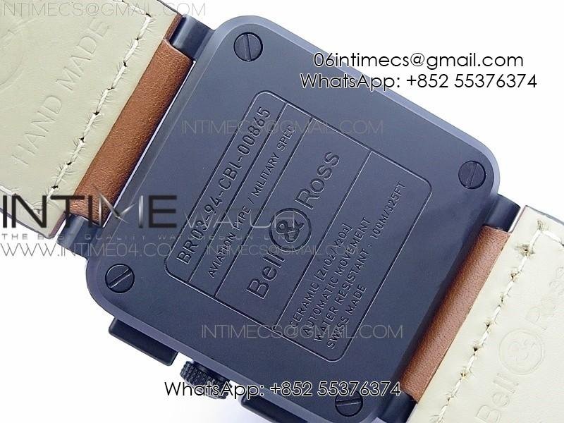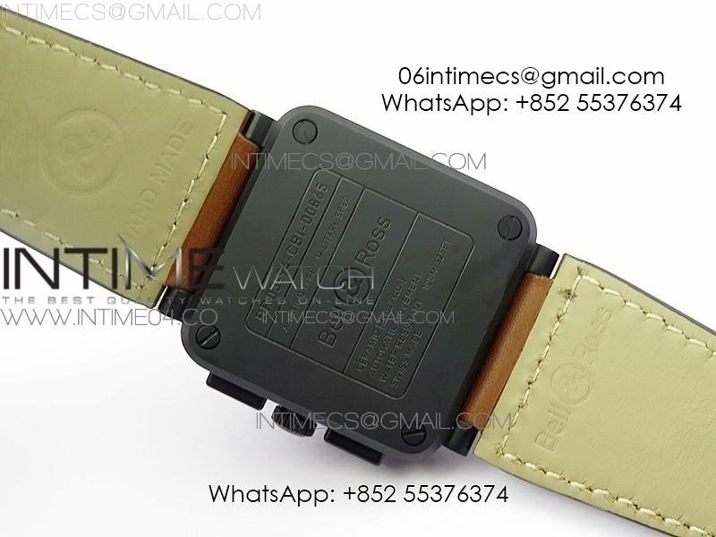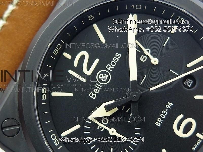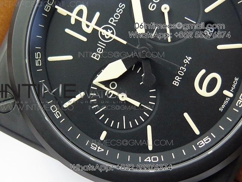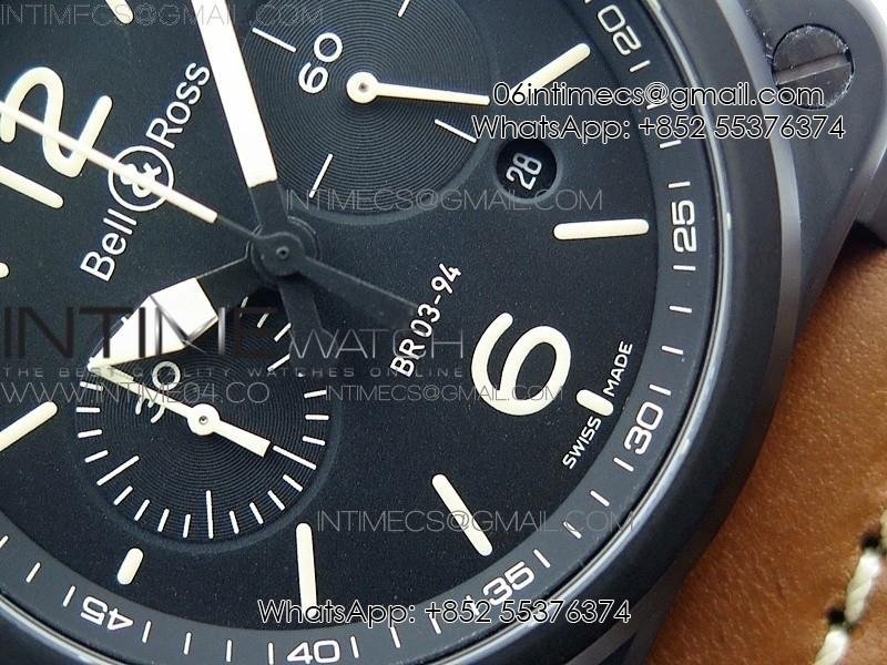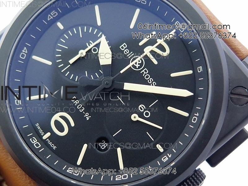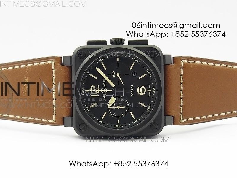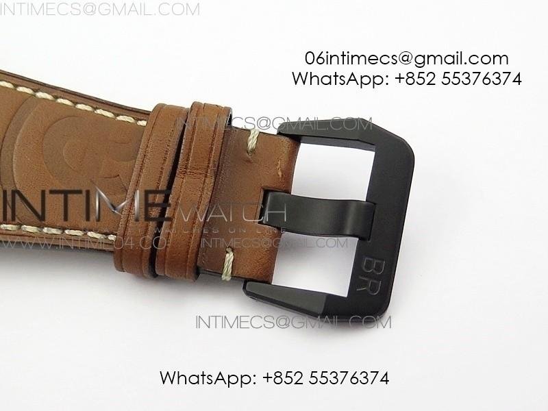 BR 03-94 Chrono PVD Black Dial Yellow Markers on Brown Leather Strap A7750 (Free Nylon Strap)
