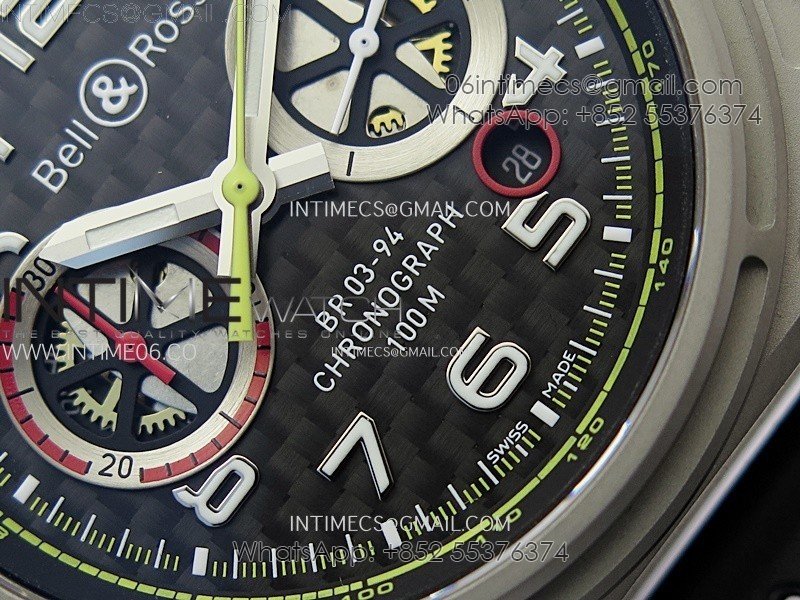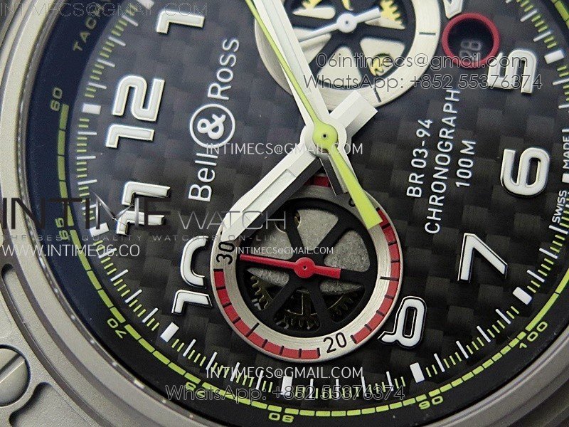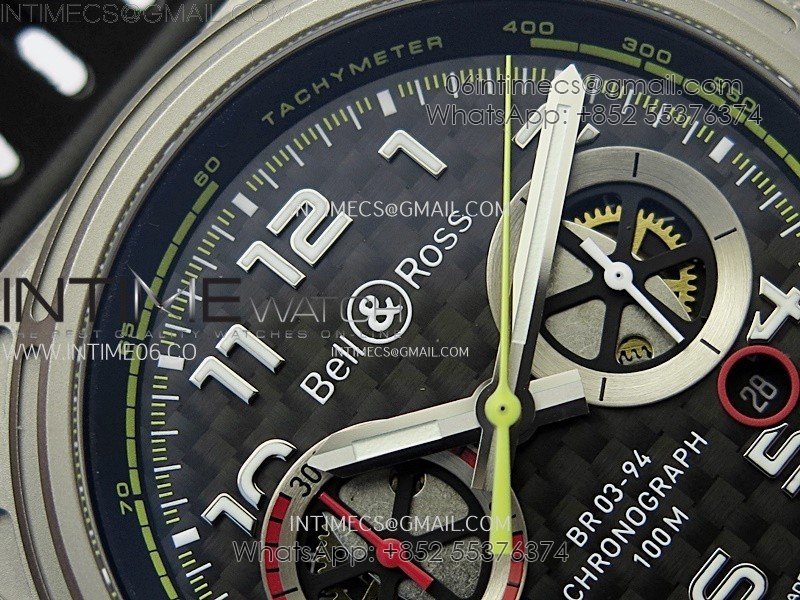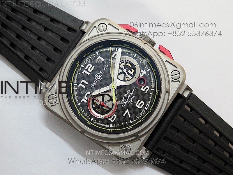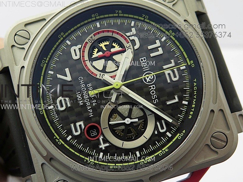 BR 03-94 Chrono Ti B12 Carbon Dial on Black Rubber Strap A7750 (Free Nylon Strap)