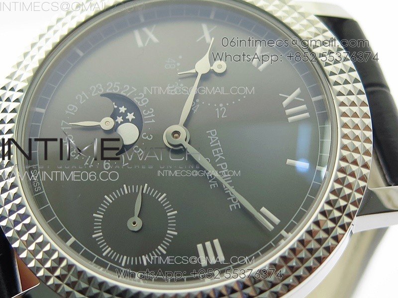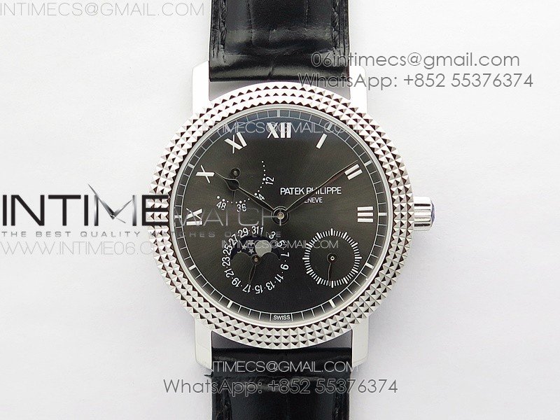 Calatrava 5057 Cortina Watch 50th Anniversary SS YSF 1:1 Best Edition Gray Dial on Black Leather Strap A240