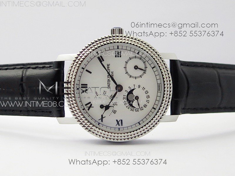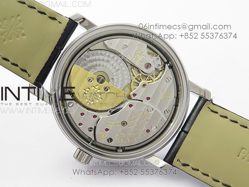 Calatrava 5057 Cortina Watch 50th Anniversary SS YSF 1:1 Best Edition White Dial on Black Leather Strap A240