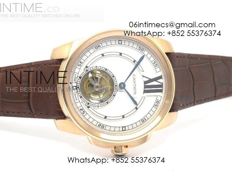 Calibre de RG Tourbillon White Dial on Brown Leather Strap