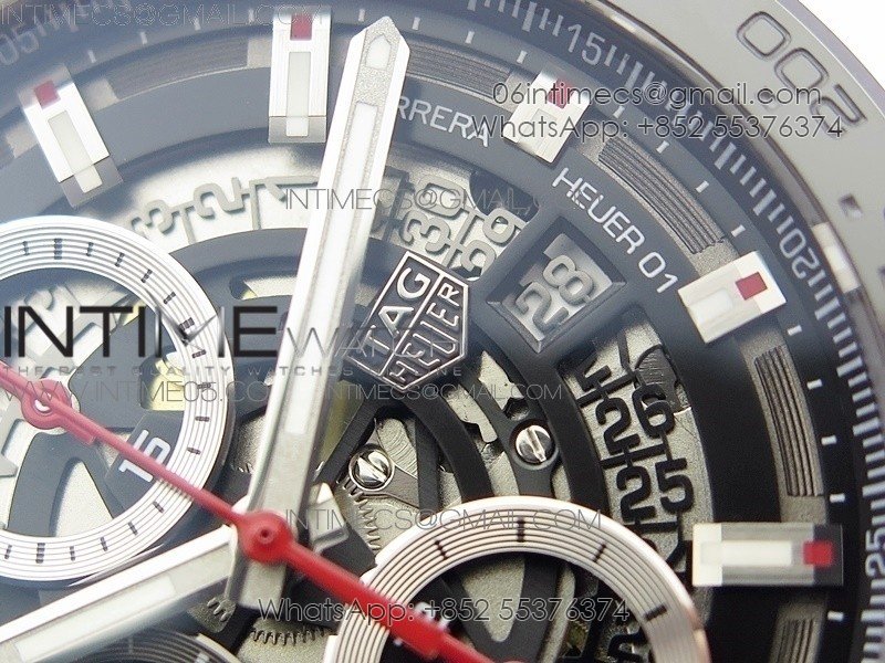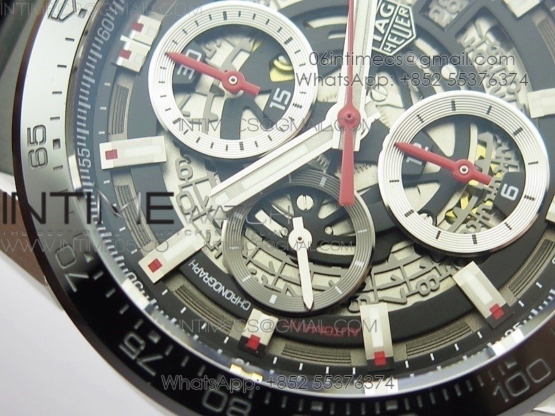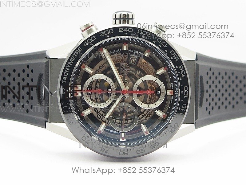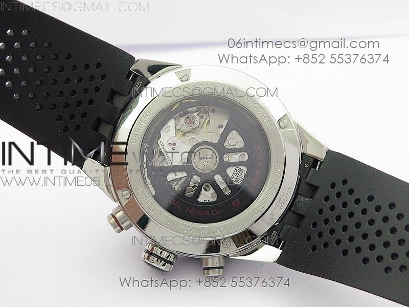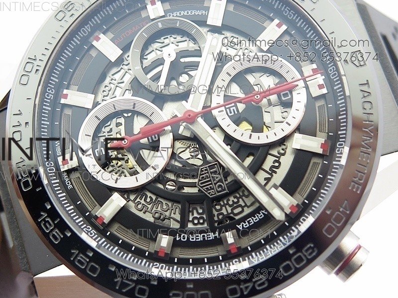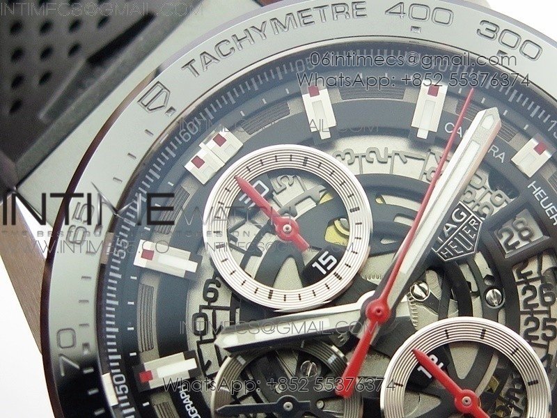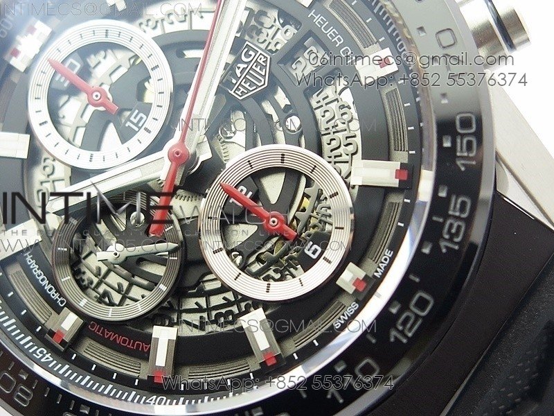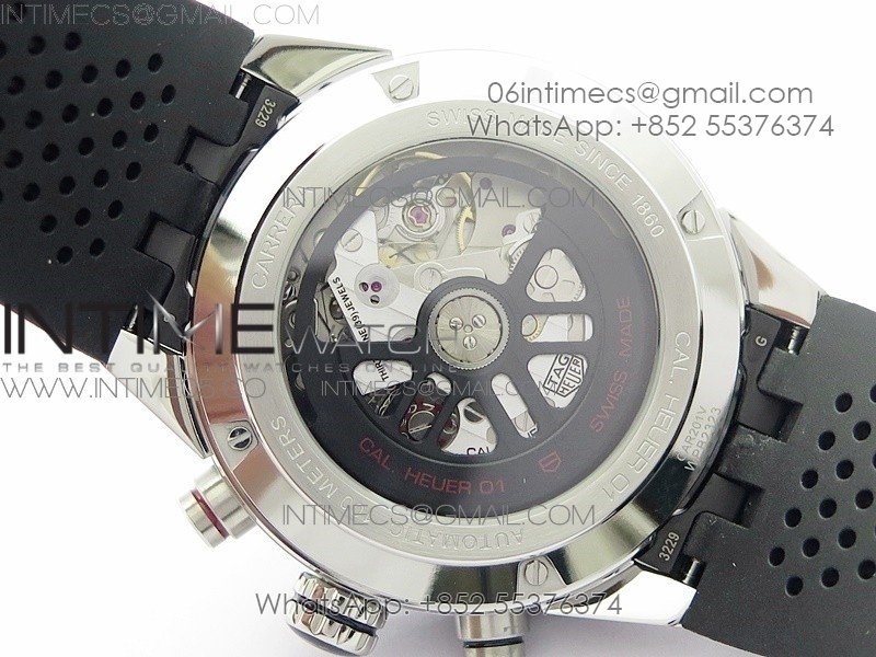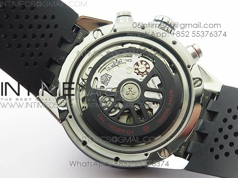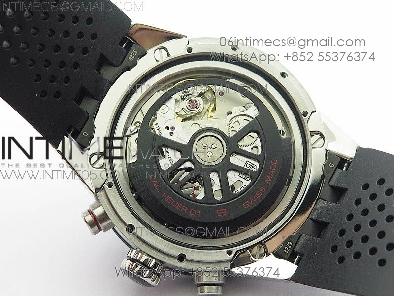 Calibre Heuer 01 Chrono 43mm SS XF 1:1 Best Edition Skeleton Dial on Rubber Strap A1887