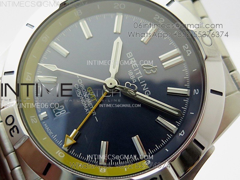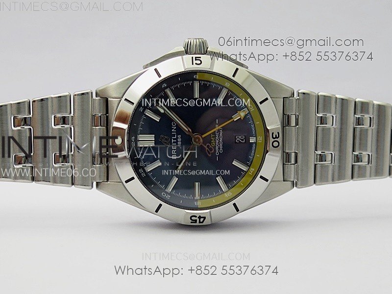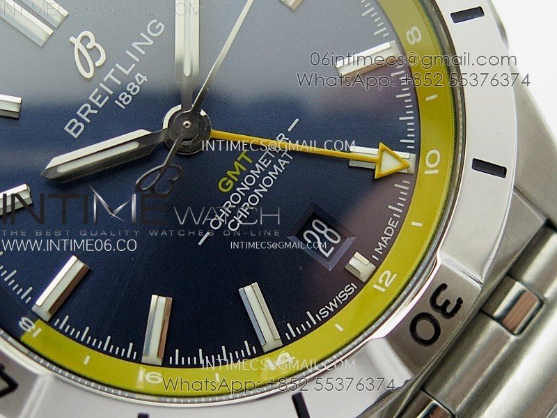 Chronomat 40mm GMT SS TWSF 1:1 Best Edition Blue/Yellow Dial on SS Bracelet A2836