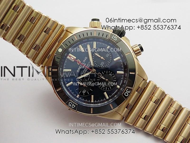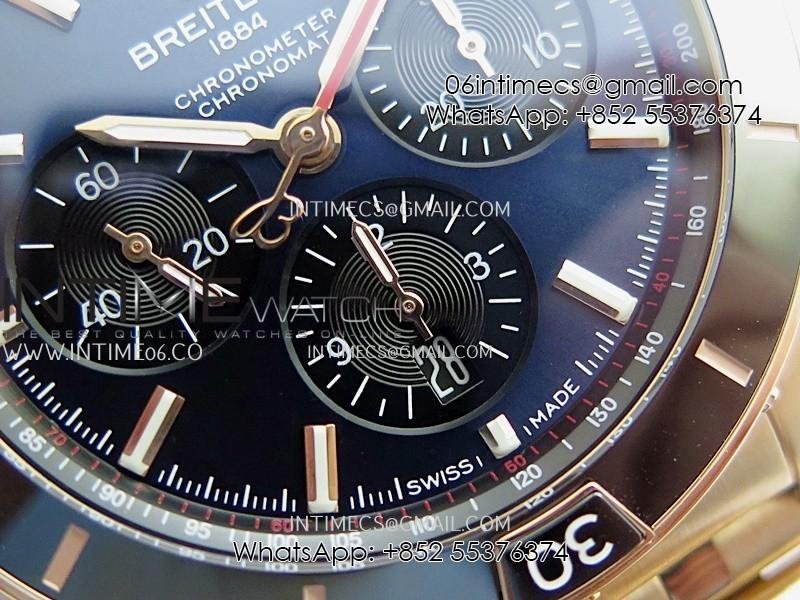 Chronomat B01 44mm RG TF 1:1 Best Edition Blue Dial On RG Bracelet A7750 To Cal.01 (Free Rubber Strap)