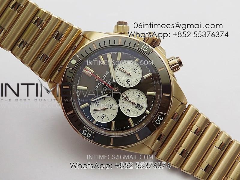 Chronomat B01 44mm RG TF 1:1 Best Edition Brown Dial On RG Bracelet A7750 To Cal.01 (Free Rubber Strap)