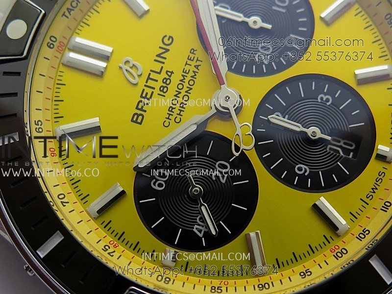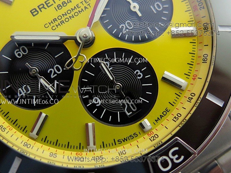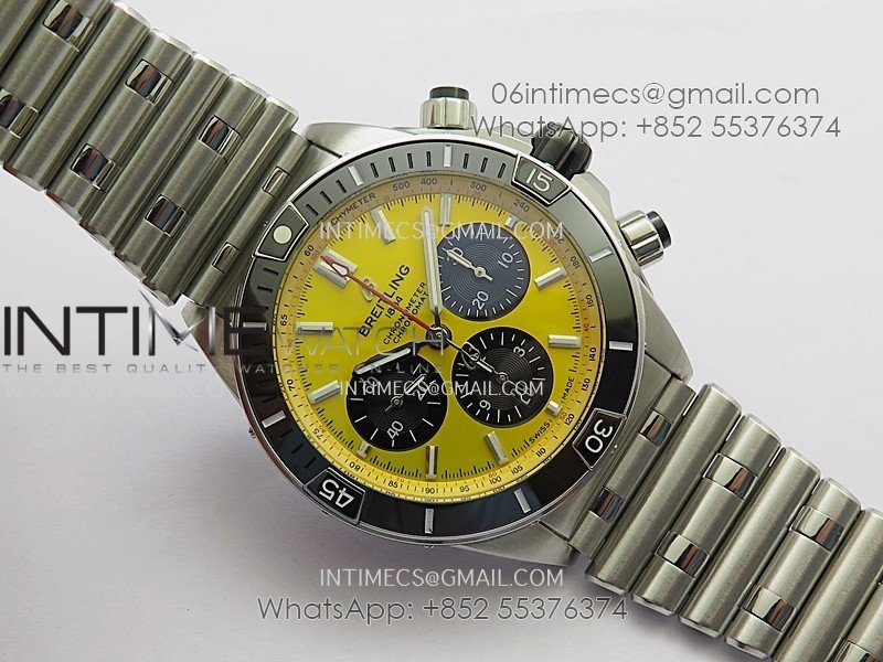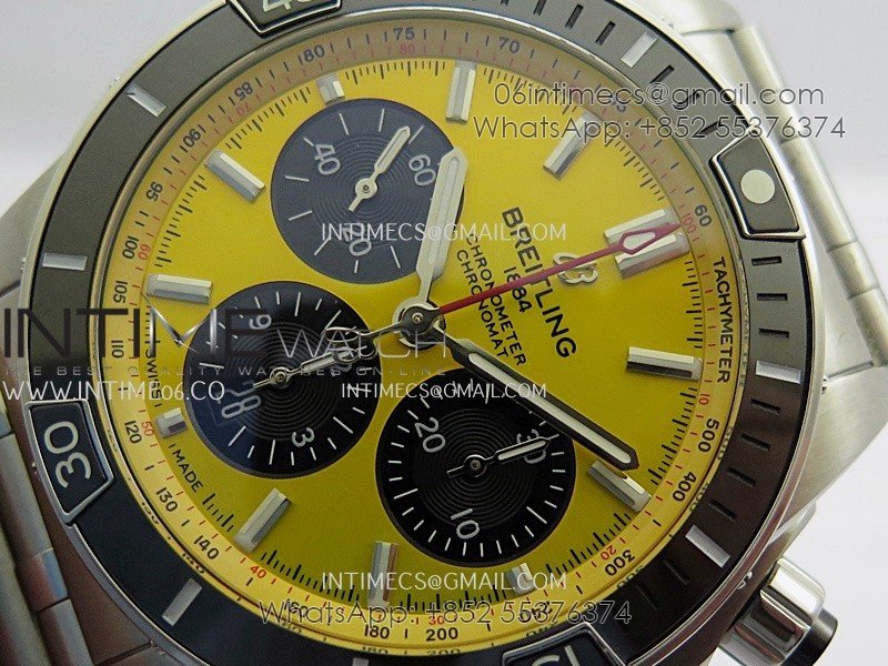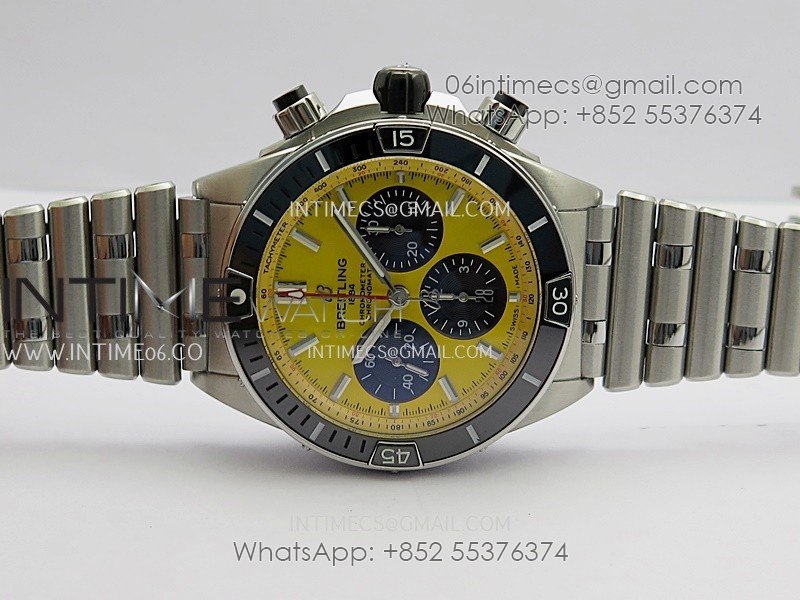 Chronomat B01 44mm SS TF 1:1 Best Edition Yellow Dial On SS Bracelet A7750 To Cal.01 (Free Rubber Strap)