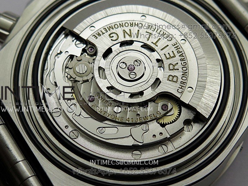 Movement Asian 7750 automatic movement at 28800 vph decorated to Breitling cal.01