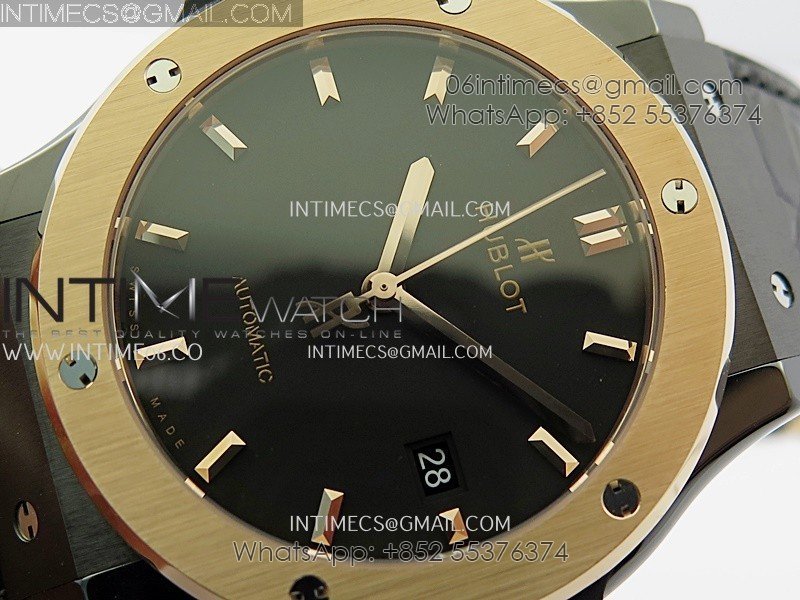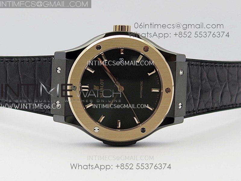Classic Fusion 42mm Ceramic/RG JJZF 1:1 Best Edition Black Dial On Black Gummy Strap
