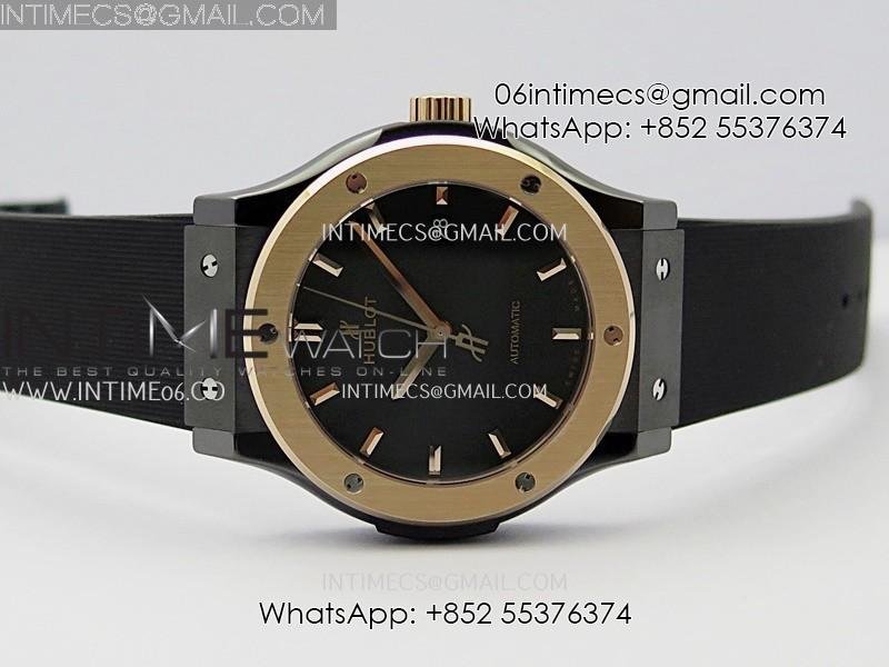 Classic Fusion 42mm Ceramic/RG JJZF 1:1 Best Edition Black Dial On Black Rubber Strap