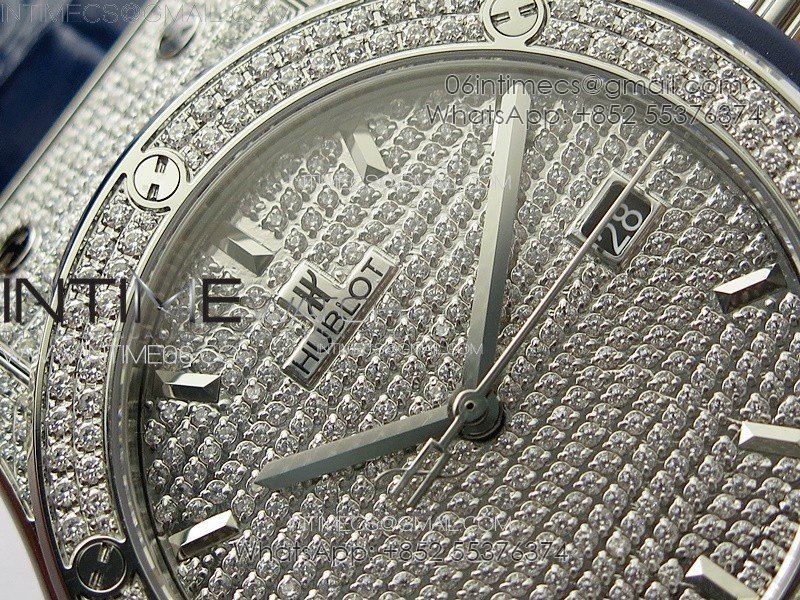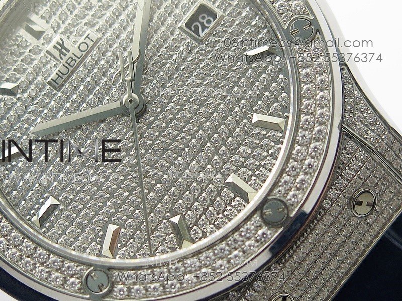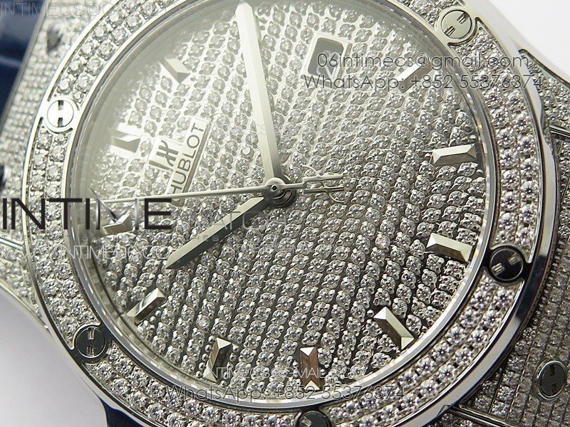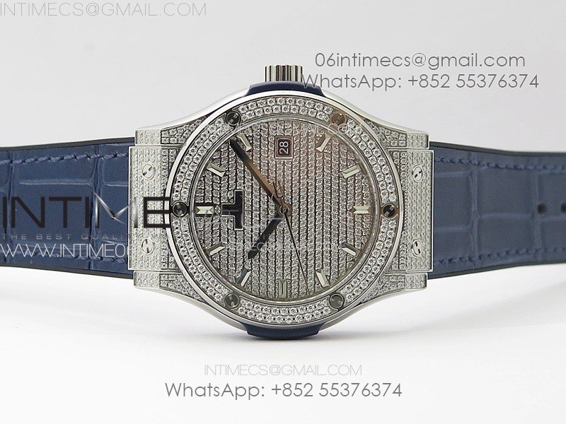 Classic Fusion 42mm SS Paved Diamonds Case And Bezel B50F Paved Diamonds Dial On Blue Gummy Strap A2892