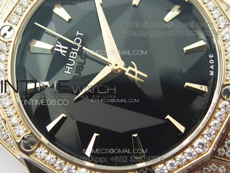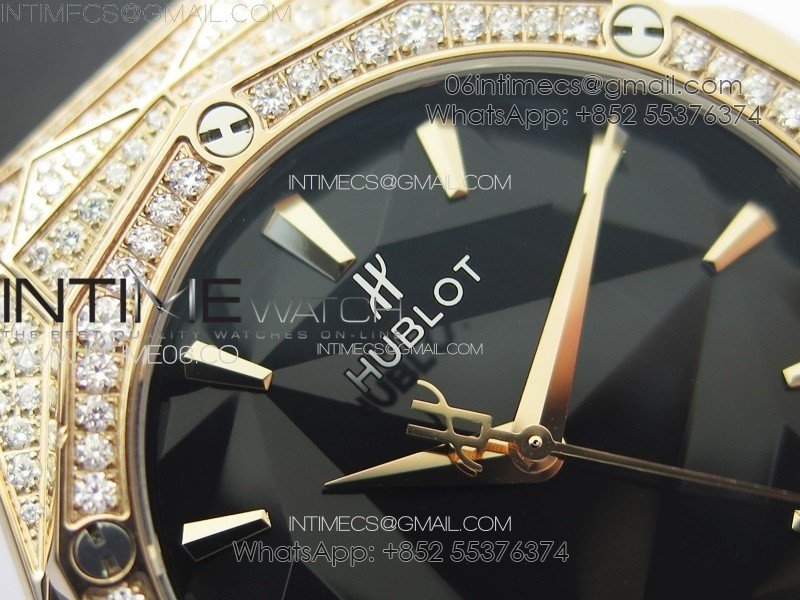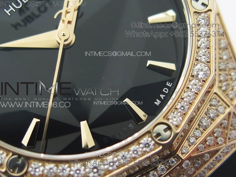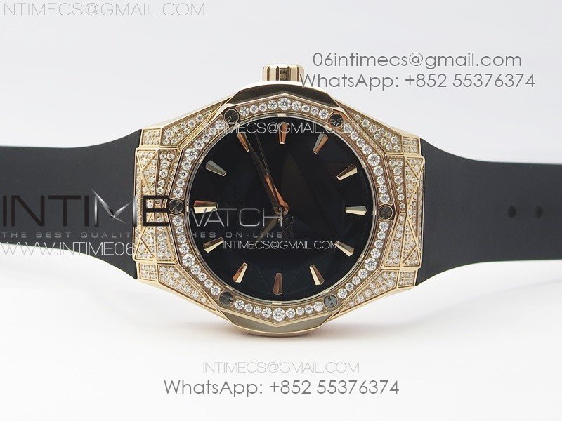 Case 18K rose gold plated solid 316L stainless steel case with real diamonds