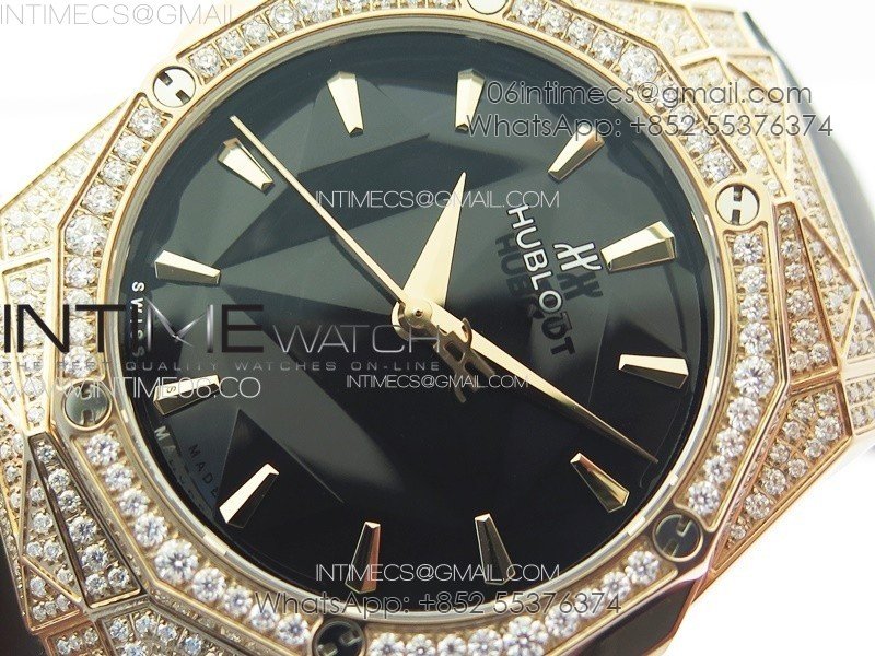 Classic Fusion Orlinski SS Full Real Diamonds RG B50F 1:1 Best Edition Black Faceted Dial on Black Rubber Strap A2892