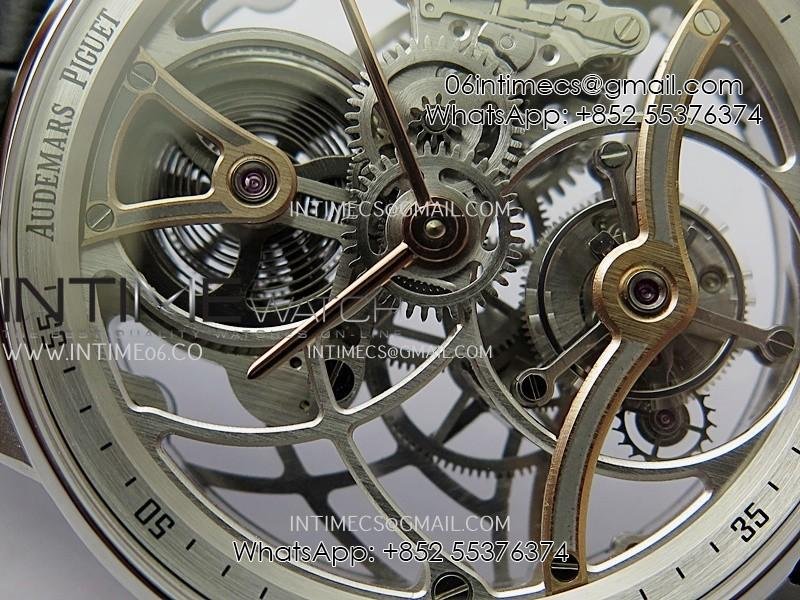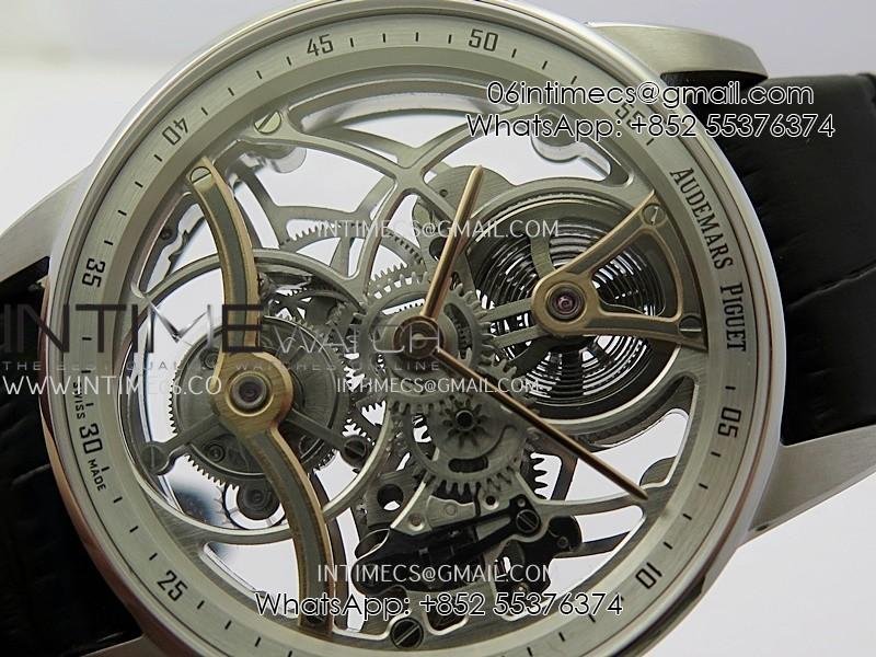 Code 11.59 26600CR SS/RG APPF Best Edition Silver Skeleton Dial On Black Leather Strap Asian Tourbillon
