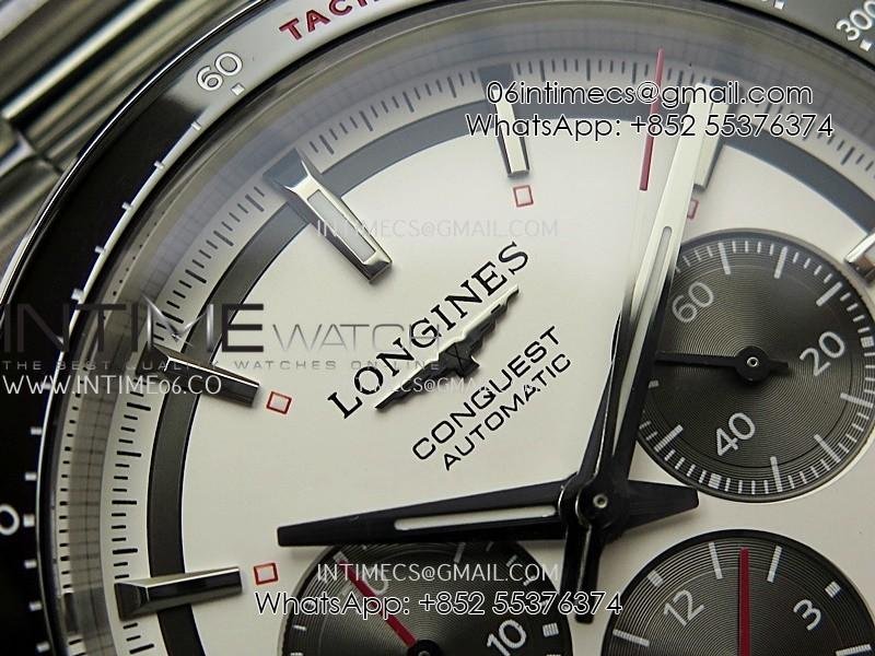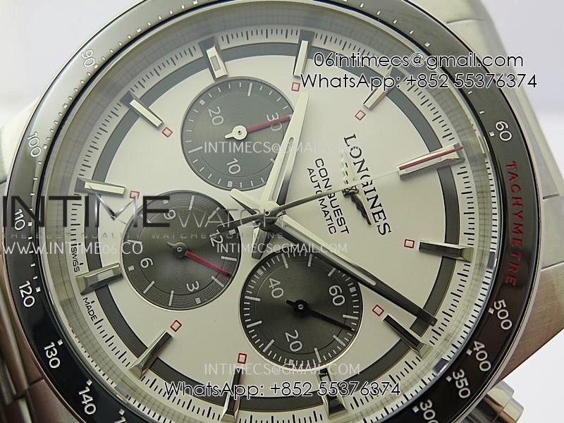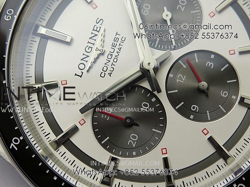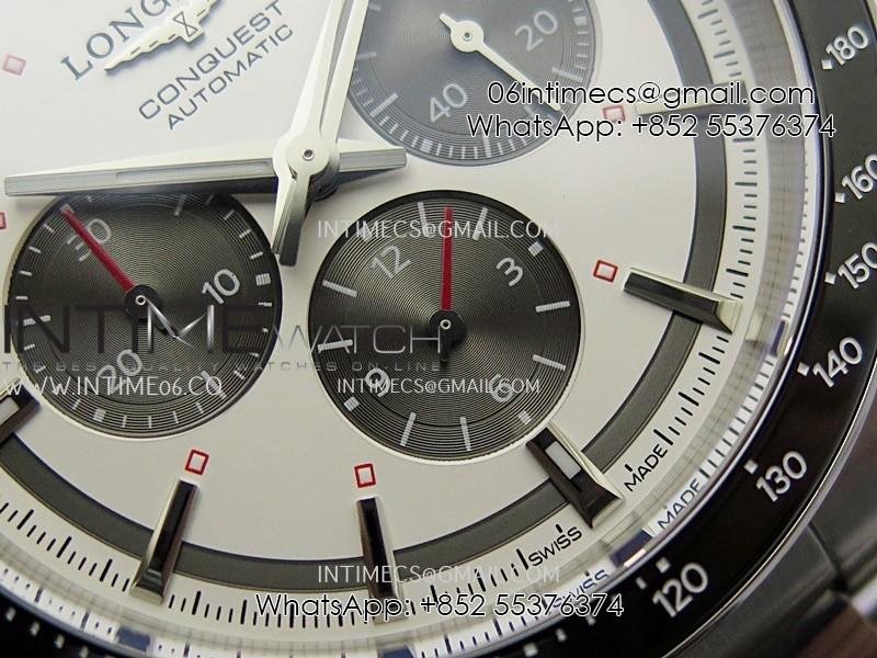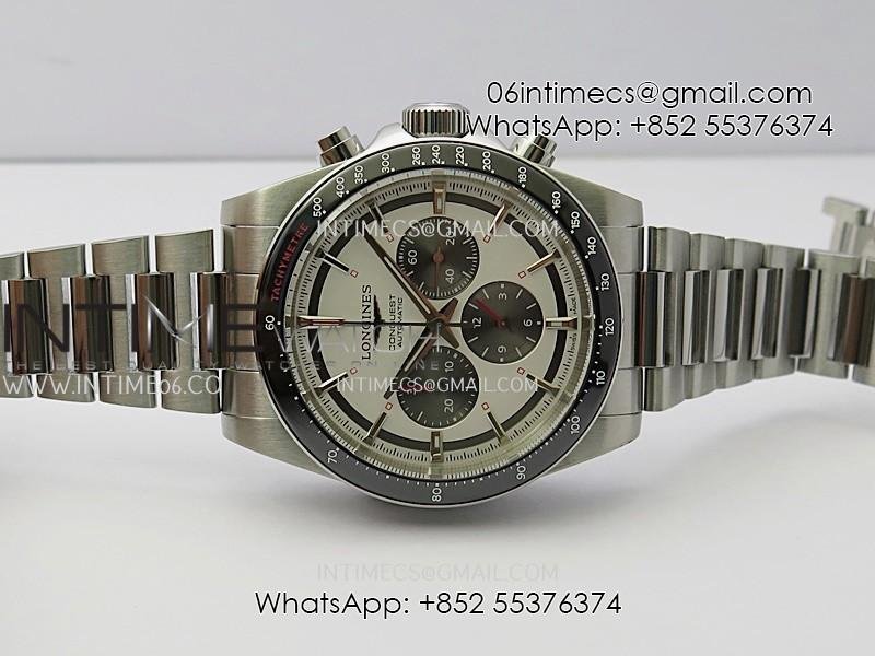 Conquest Chronograph 42mm Black Ceramic Bezel SS AF 1:1 Best Edition Cream Dial On SS Bracelet A7750