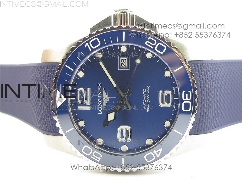 Conquest L3.840.4.56.6 Real Ceramic Bezel SS ZF 1:1 Best Edition Blue dial On Rubber Strap A2824