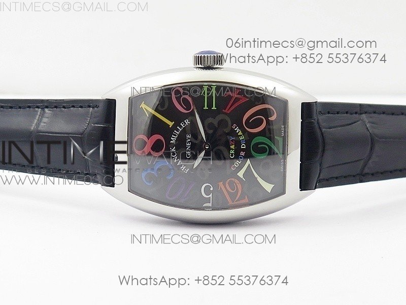 Crazy Hours Real Jumping Hour SS ABF Black Dial Colorful Markers on Black Leather Strap A23J