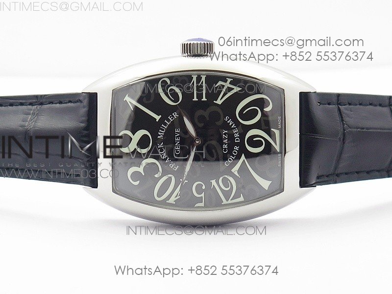 Crazy Hours Real Jumping Hour SS ABF Black Dial White Markers on Black Leather Strap A23J