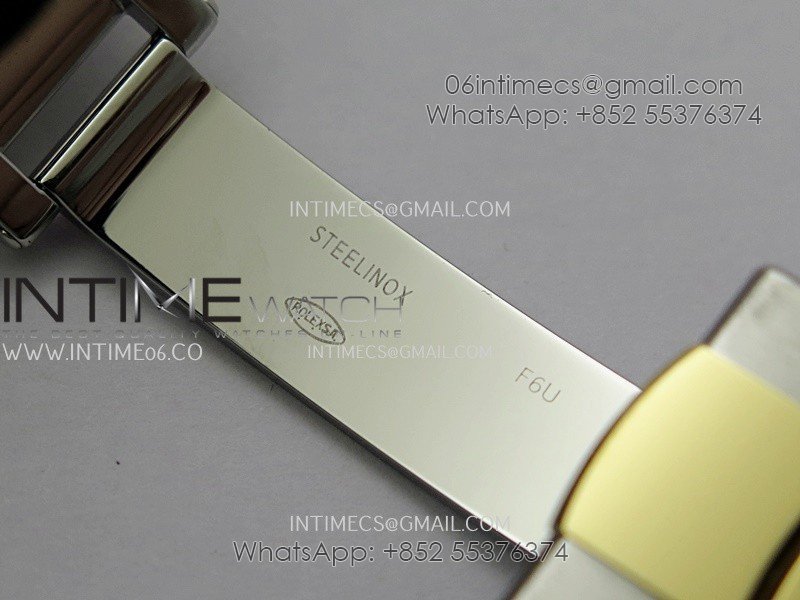 Strap      904L stainless steel bracelet with 18k yellow gold plated middle links