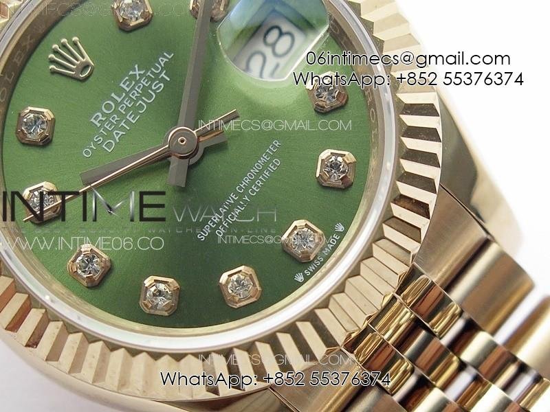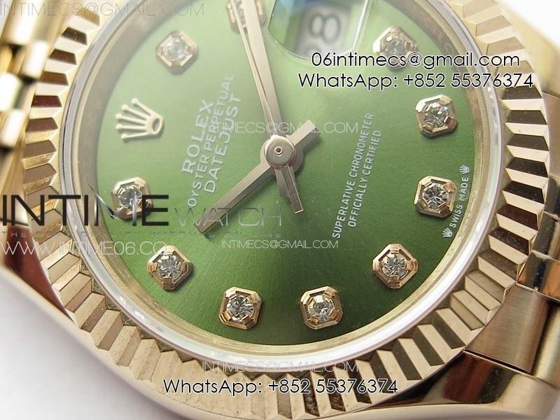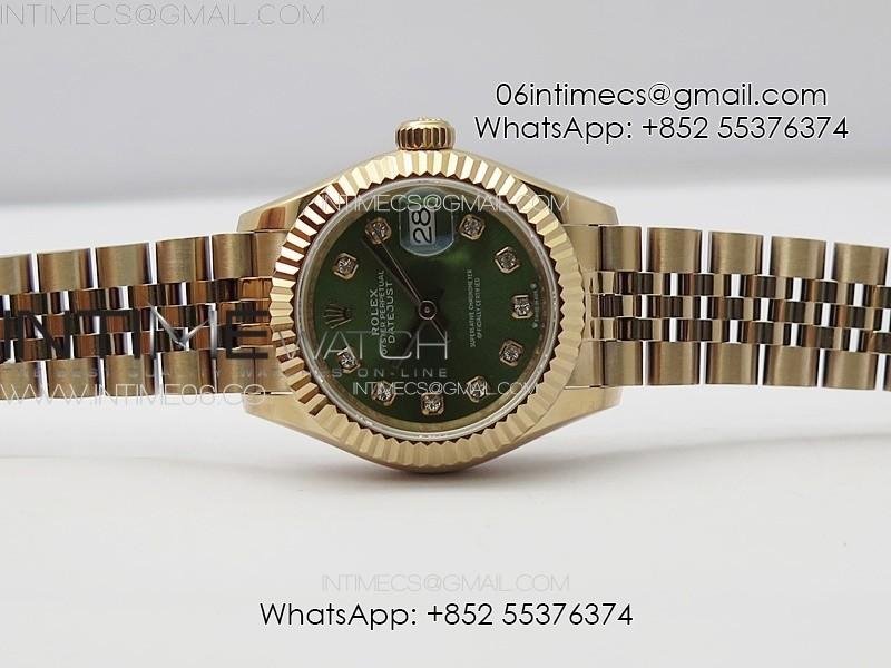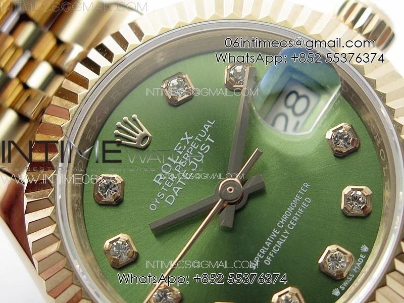 Datejust 28mm 279179 RG APSF Best Edition Green Dial Crystals Markers on SS Jubilee Bracelet NH05