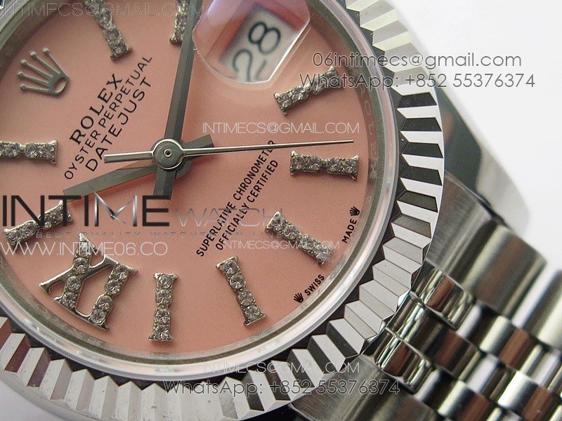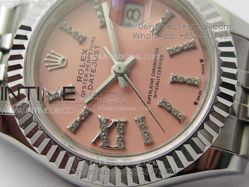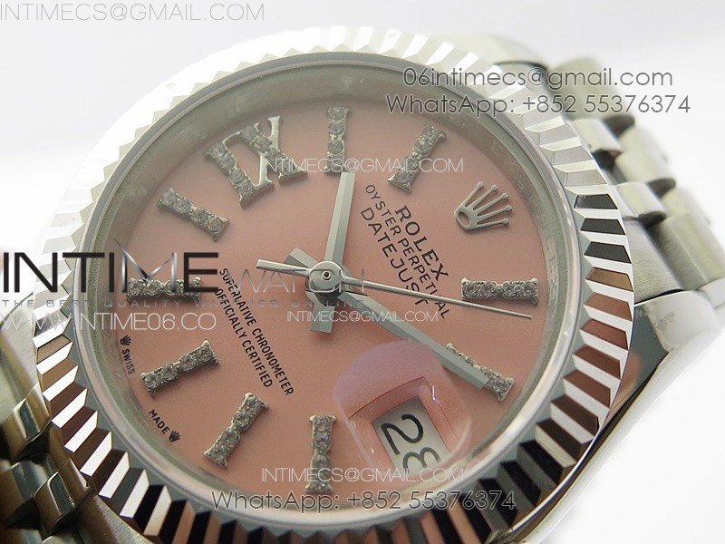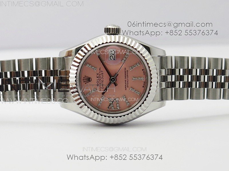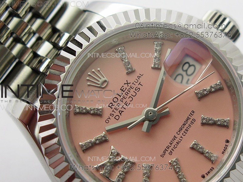Datejust 28mm 279179 SS APSF Best Edition Pink Dial Sticks Crystals Markers on SS Jubilee Bracelet NH05