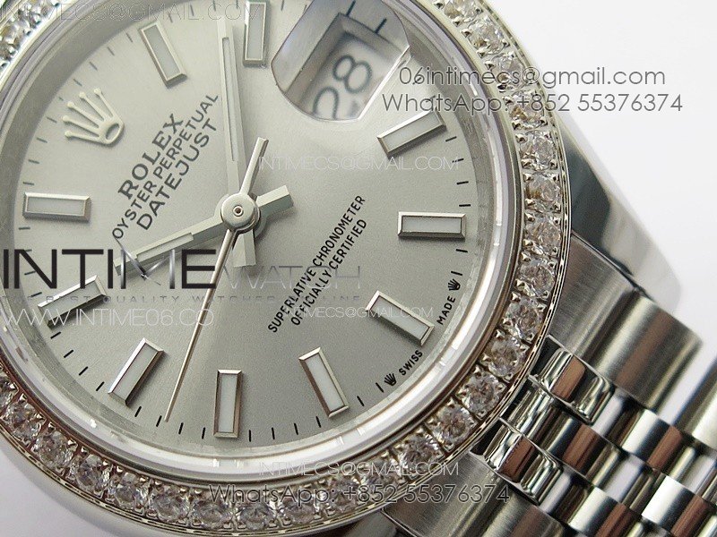 Datejust 28mm 279179 SS/Crystals APSF Best Edition Silver Dial Sticks Markers on SS Jubilee Bracelet NH05