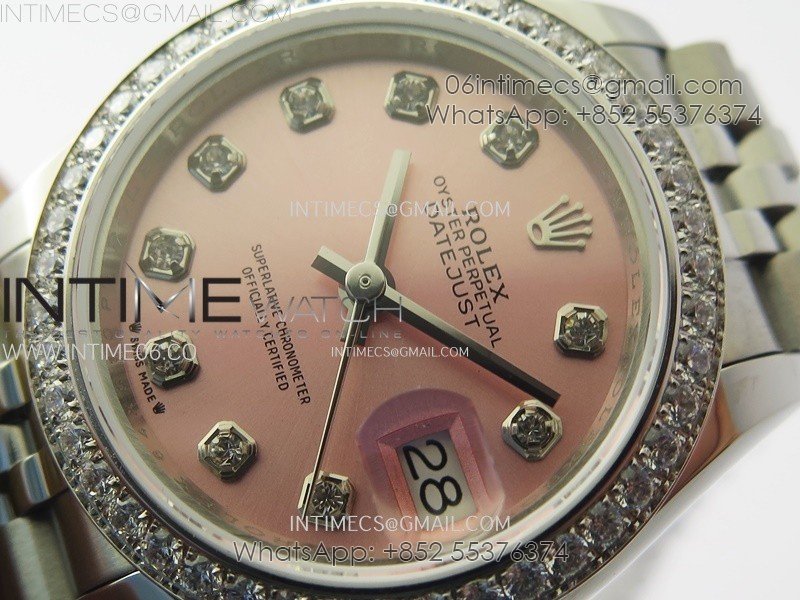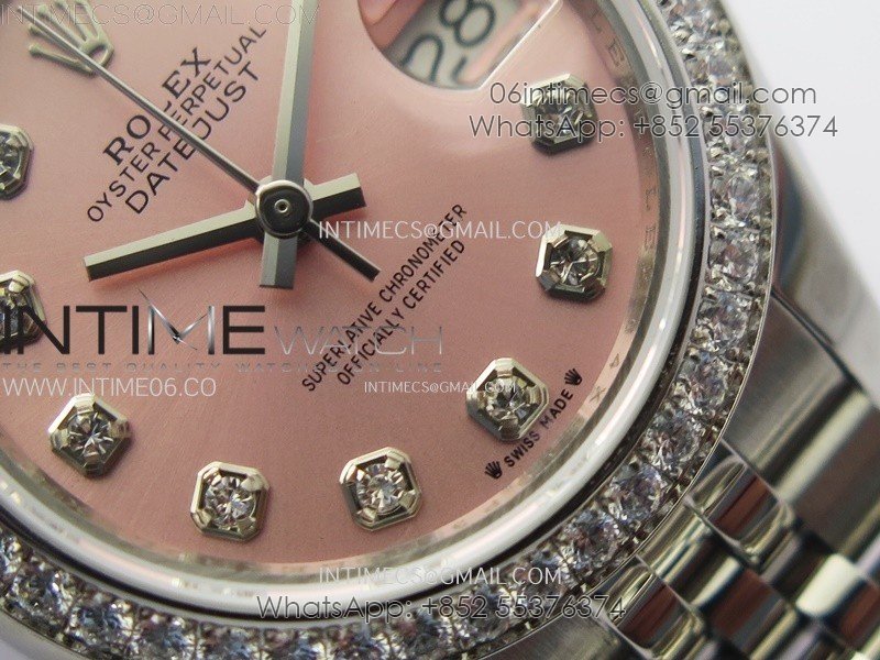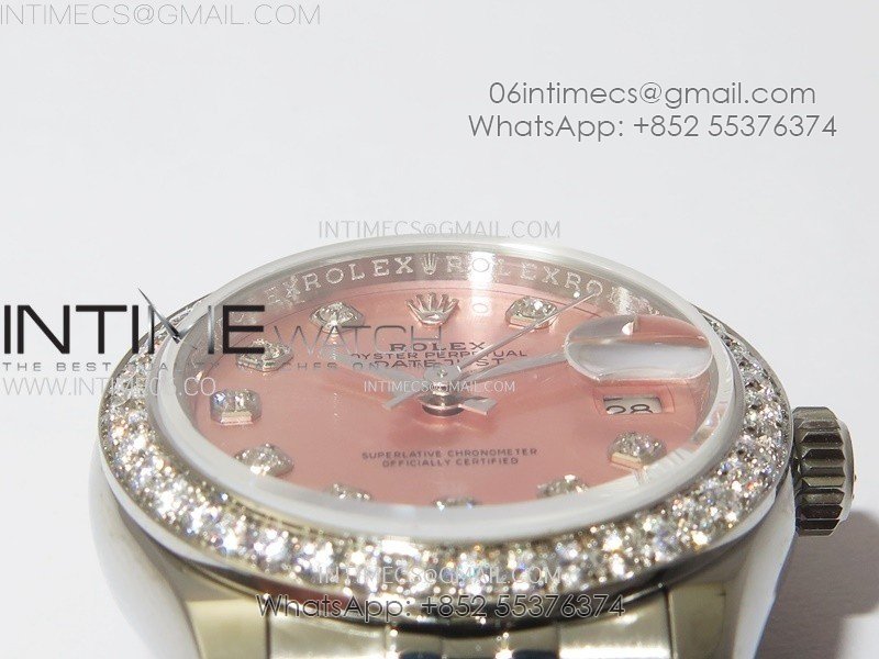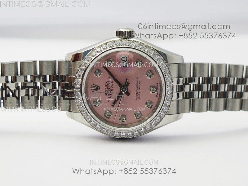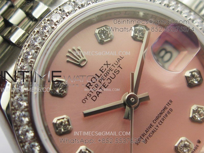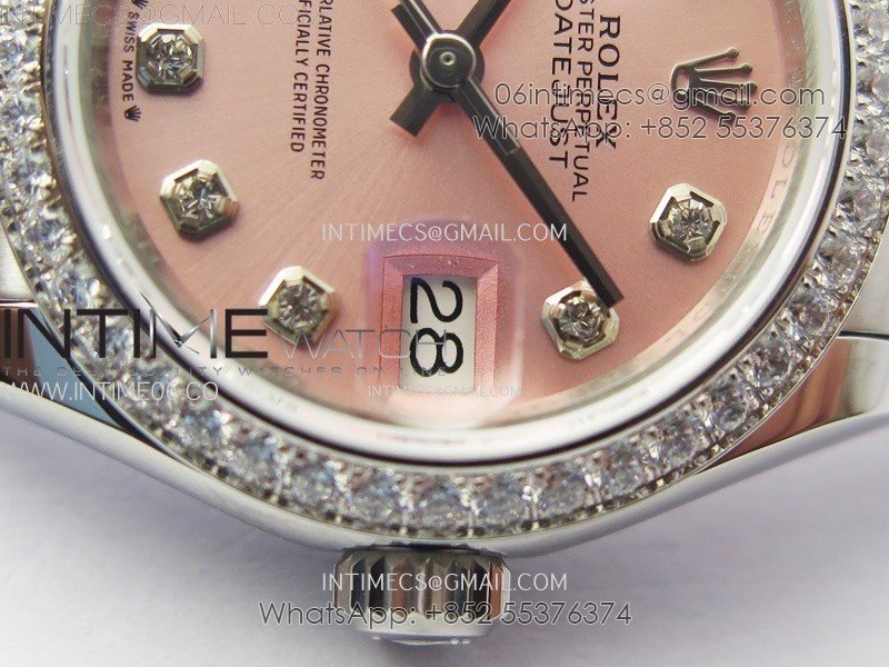 Datejust 28mm 279179 SS/Crystals Bezel APSF Best Edition Pink Dial Crystals Markers on SS Jubilee Bracelet NH05