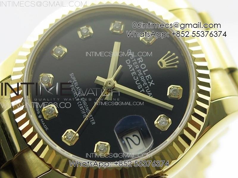 DateJust 31mm 178271 YG APSF Best Edition Black Dial Crystal Markers on President Bracelet A2824