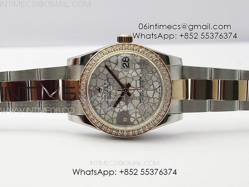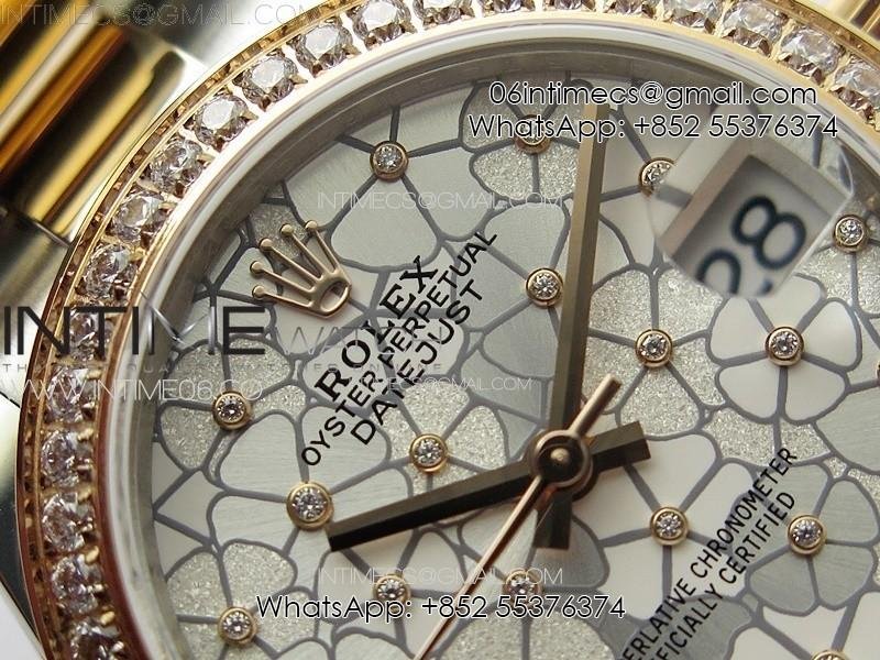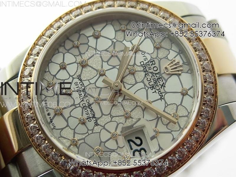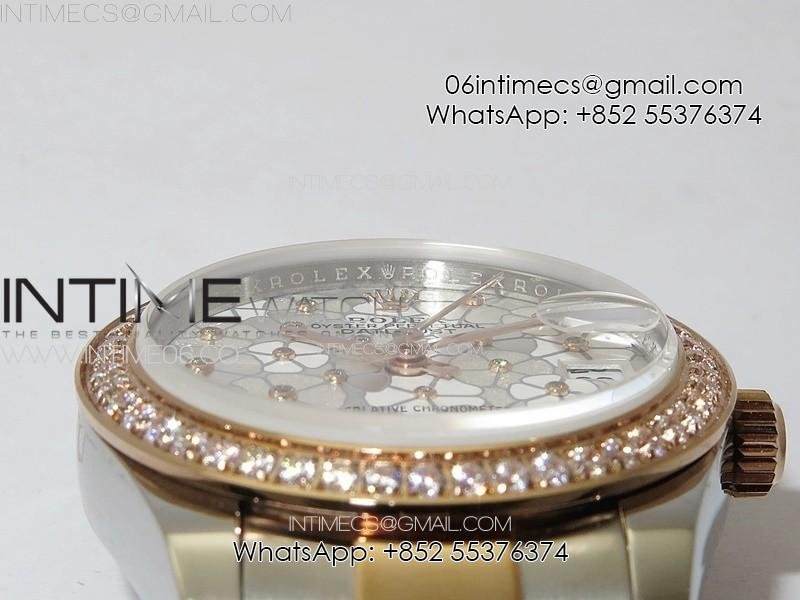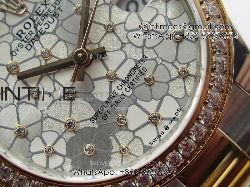 DateJust 31mm 278274 904L SS/RG Crystals Bezel GMF Best Edition Silver Flowers Crystals Dial on 904L SS/RG Oyster Bracelet A2824