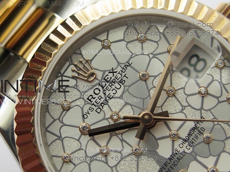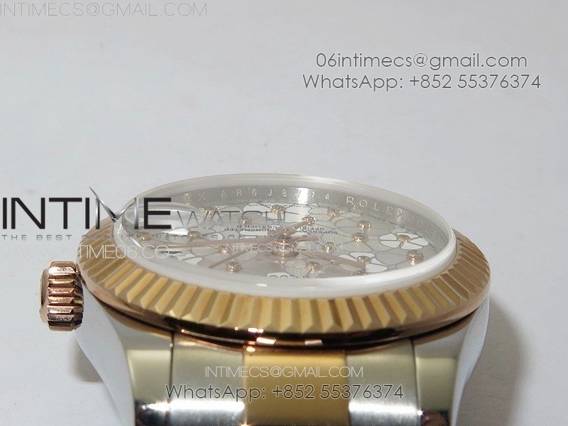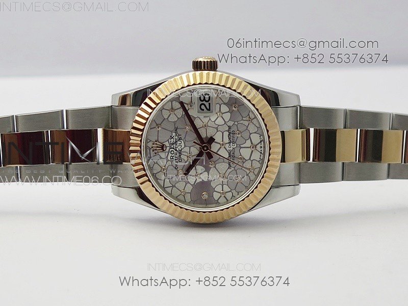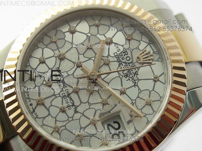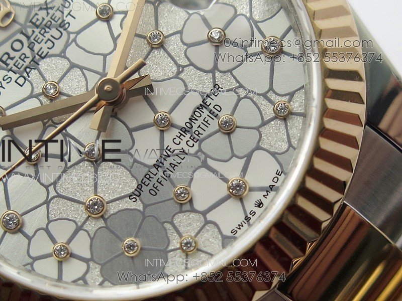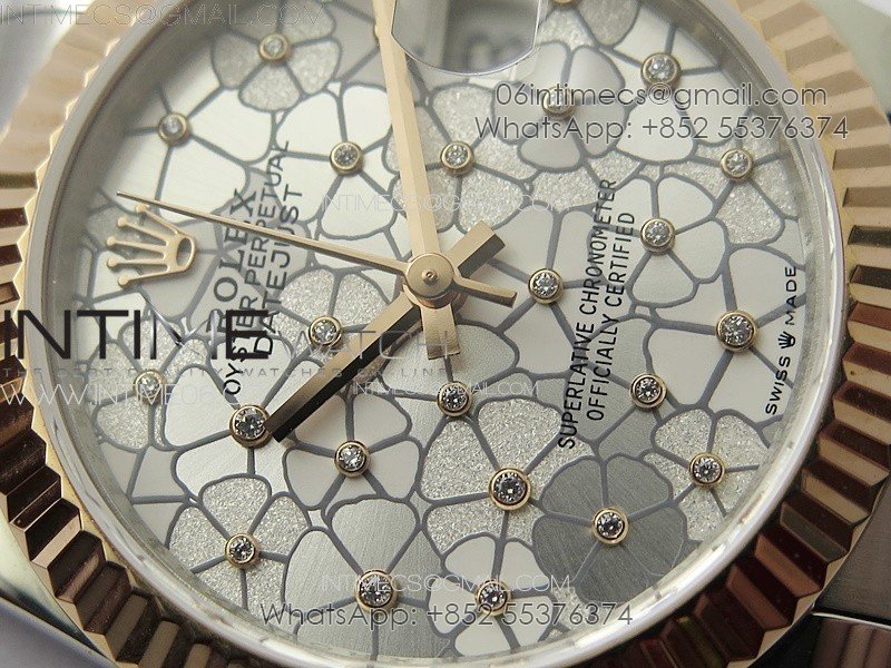 DateJust 31mm 278274 904L SS/RG GMF Best Edition Silver Flowers Crystals Dial on 904L SS/RG Oyster Bracelet A2824