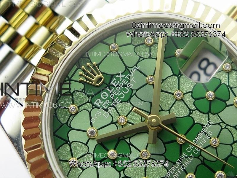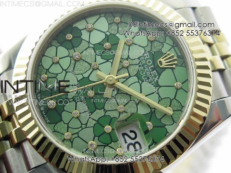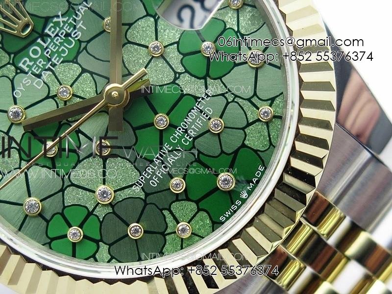 DateJust 31mm 278274 904L SS/YG GMF Best Edition Green Flowers Crystals Dial on 904L SS/YG Jubilee Bracelet A2824