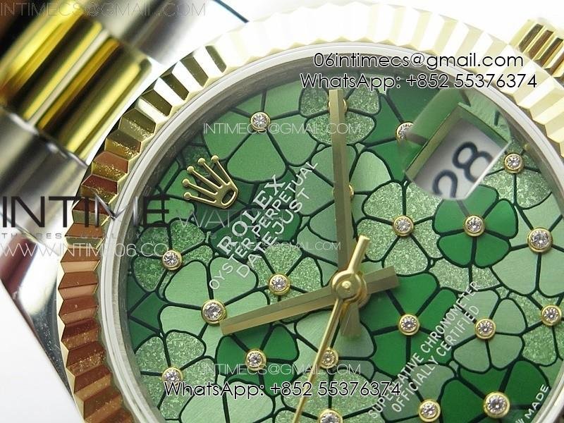 DateJust 31mm 278274 904L SS/YG GMF Best Edition Green Flowers Crystals Dial on 904L SS/YG Oyster Bracelet A2824