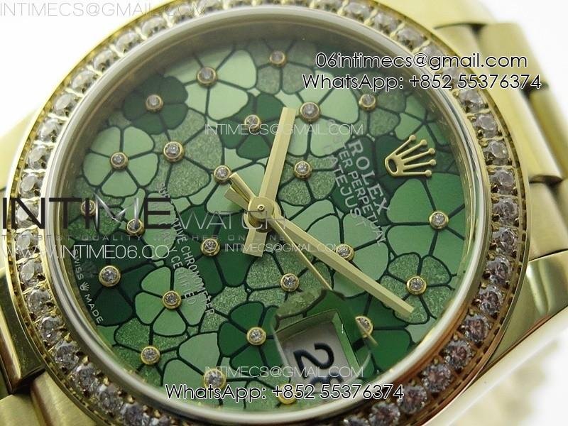 DateJust 31mm 278274 YG Crystals Bezel GMF Best Edition Green Flowers Crystals Dial on YG President Bracelet A2824