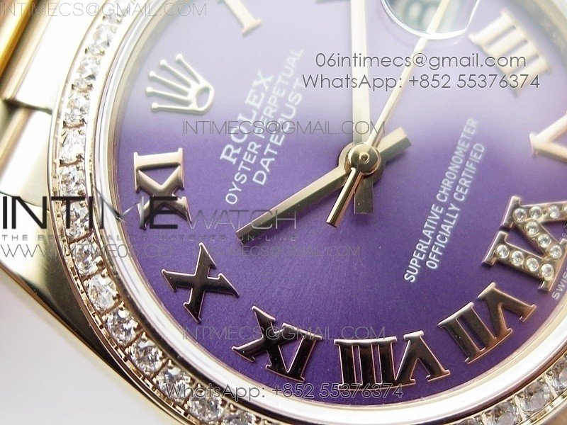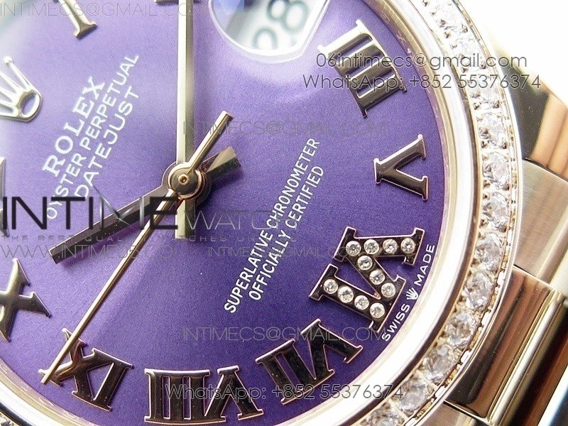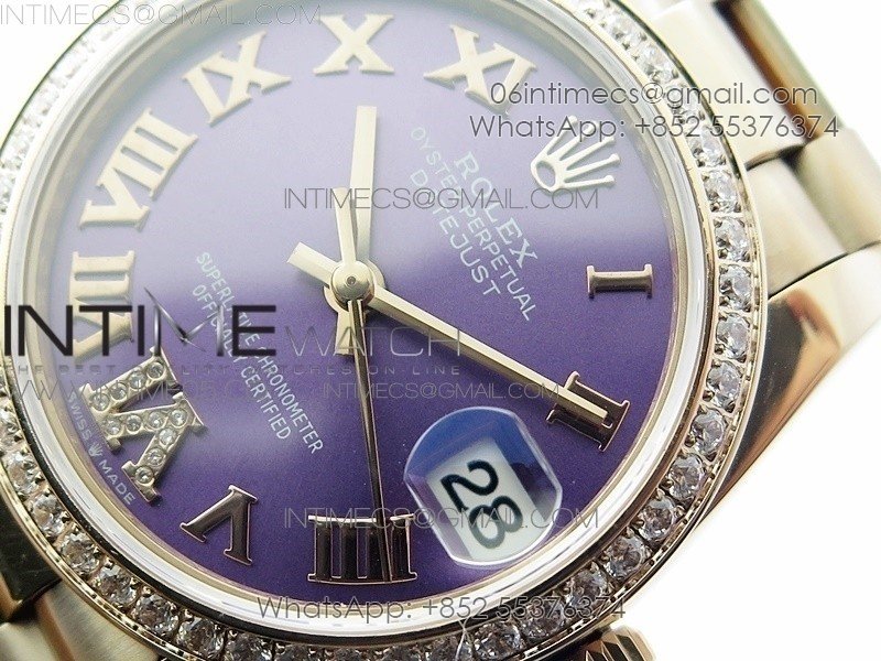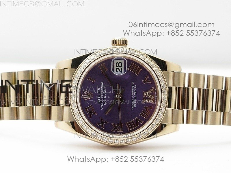 Datejust 31mm 278275 RG Dia Bezel BP Best Edition Purple Roman Markers Dial @6 Dia on RG President Bracelet