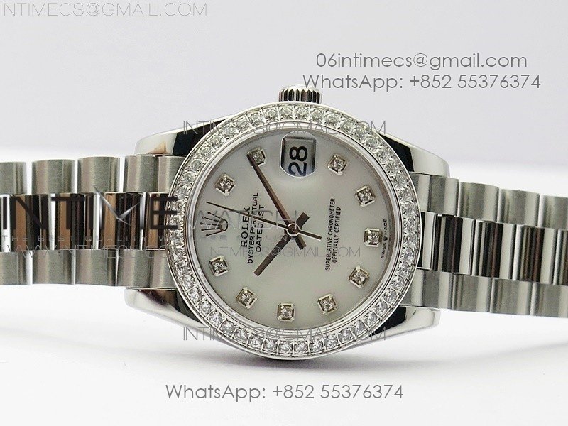 Datejust 31mm 278275 SS Crystal bezel BP Best Edition White Mop Dial(@6 Crystal Marker) on SS President Bracelet