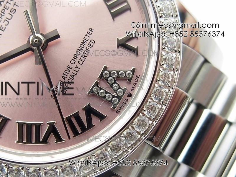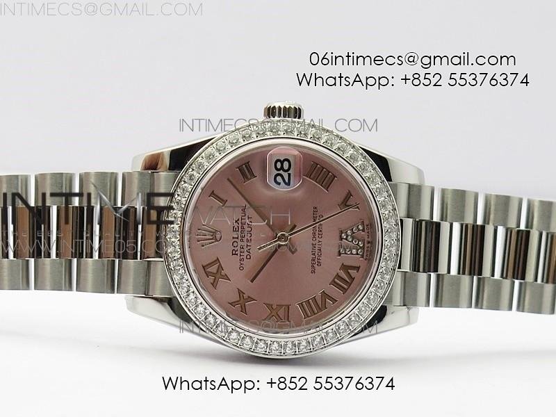 Datejust 31mm 278275 SS Crystals bezel BP Best Edition Pink Roman Markers Dial(@6 Crystal Marker) on SS President Bracelet
