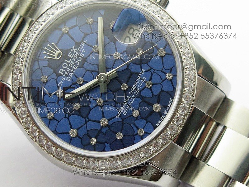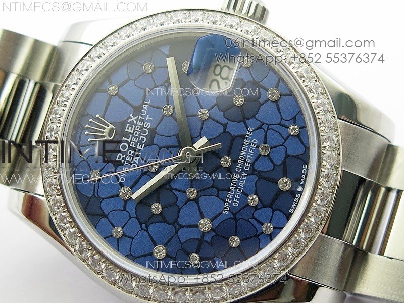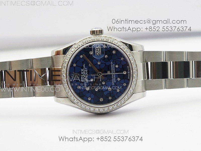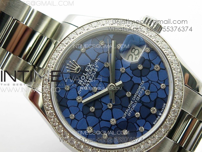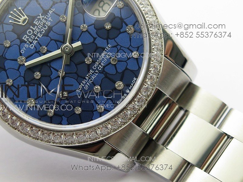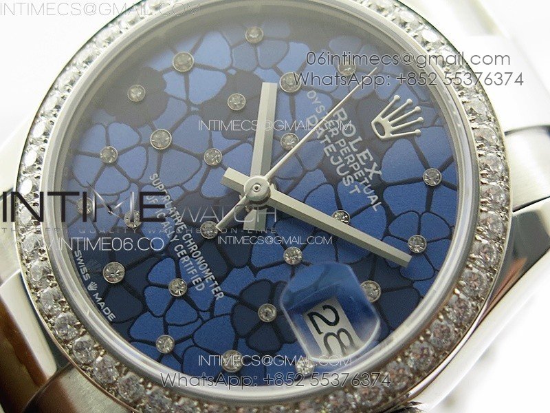DateJust 31mm 72610 Crystals Bezel SS APSF Best Edition Blue Flowers Crystals Dial on Oyster Bracelet A2824