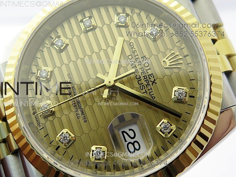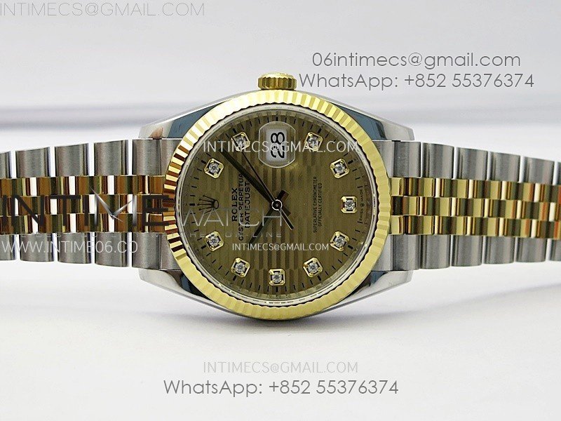 DateJust 36 SS 126233 904L SS/YG VSF 1:1 Best Edition Gold Fluted Dial Diamonds Markers on Jubilee Bracelet VS3235