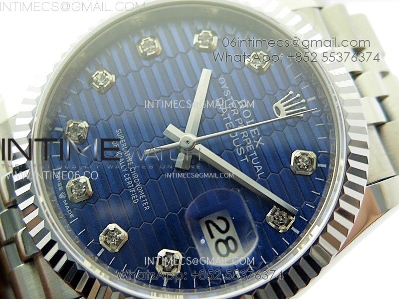 DateJust 36MM 126234 SS APSF 1:1 Best Edition Blue Fluted Dial Diamond Markers on SS Jubilee Bracelet SA3235