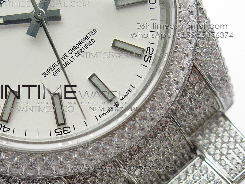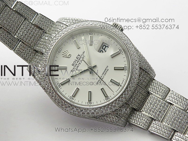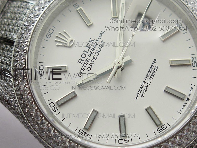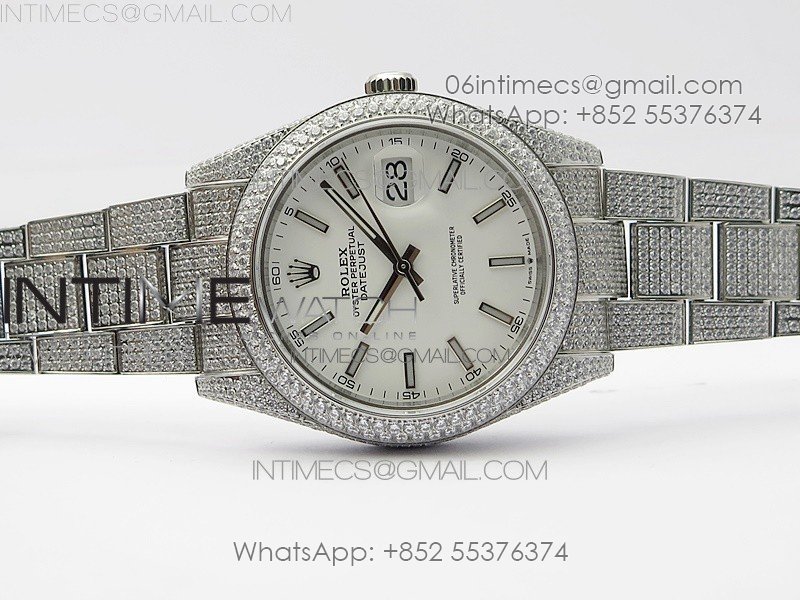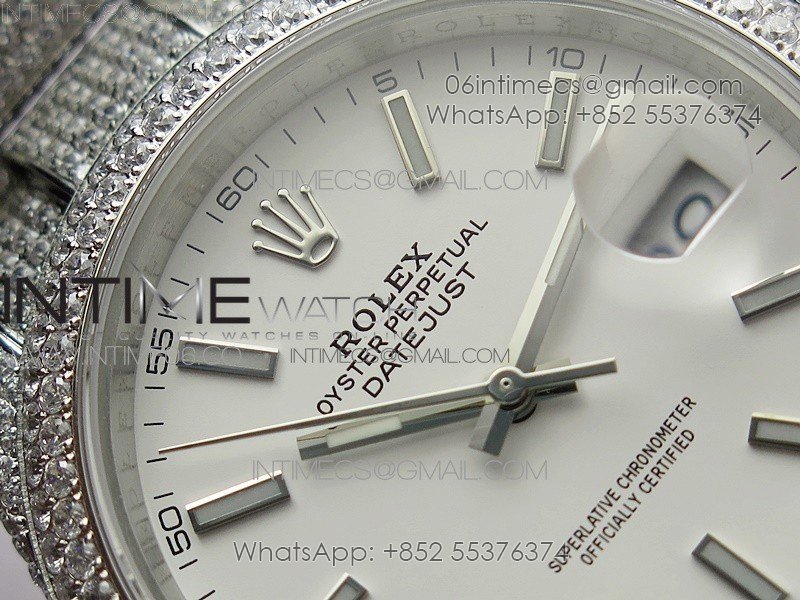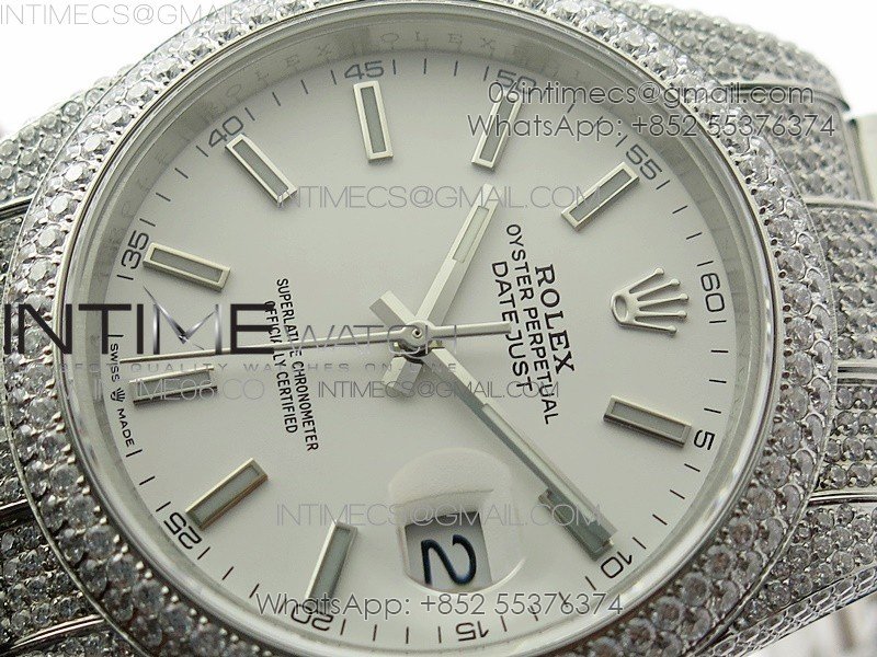 DateJust 41 126334 904 Full Paved Diamonds BP Best Edition White Dial Sticks Markers on Oyster Bracelet A2824